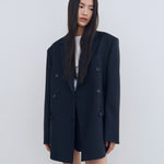 سترة كلاسيكية مفصلة مزدوجة الصدر باللون الكحلي