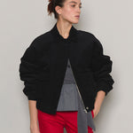 يقدم التصميم الواسع لجاكيت البومبر مظهراً عصرياً، مع تعزيز بواسطة الحشوة المبطنّة لمزيد من الدفء.