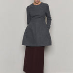 فستان رمادي بقصة الساعة مصنوع من مزيج الصوف