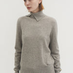 كنزة برقبة عالية من الكشمير 100% باللون الرمادي الممزوج
