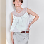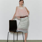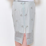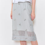 تنورة متوسطة الطول مطرزة بالخرز باللون الأخضر الضبابي