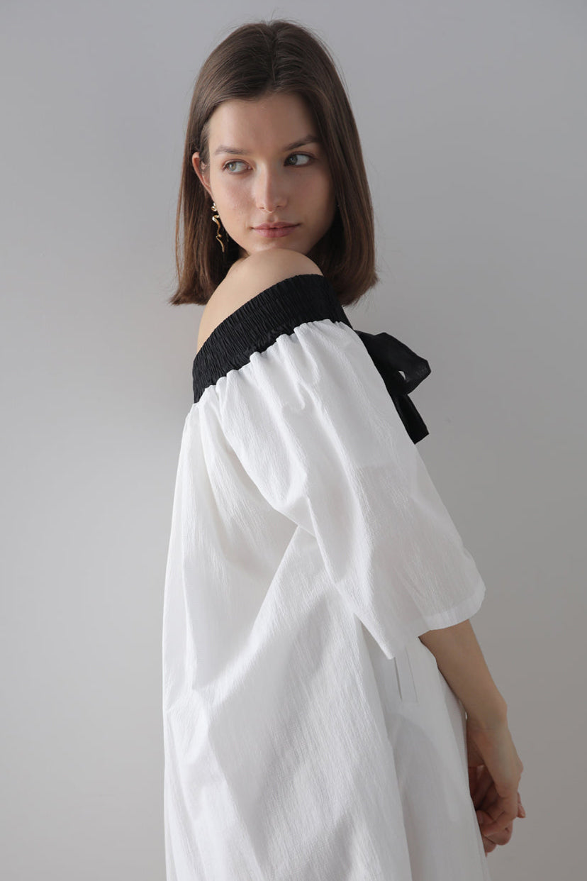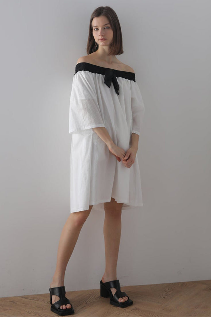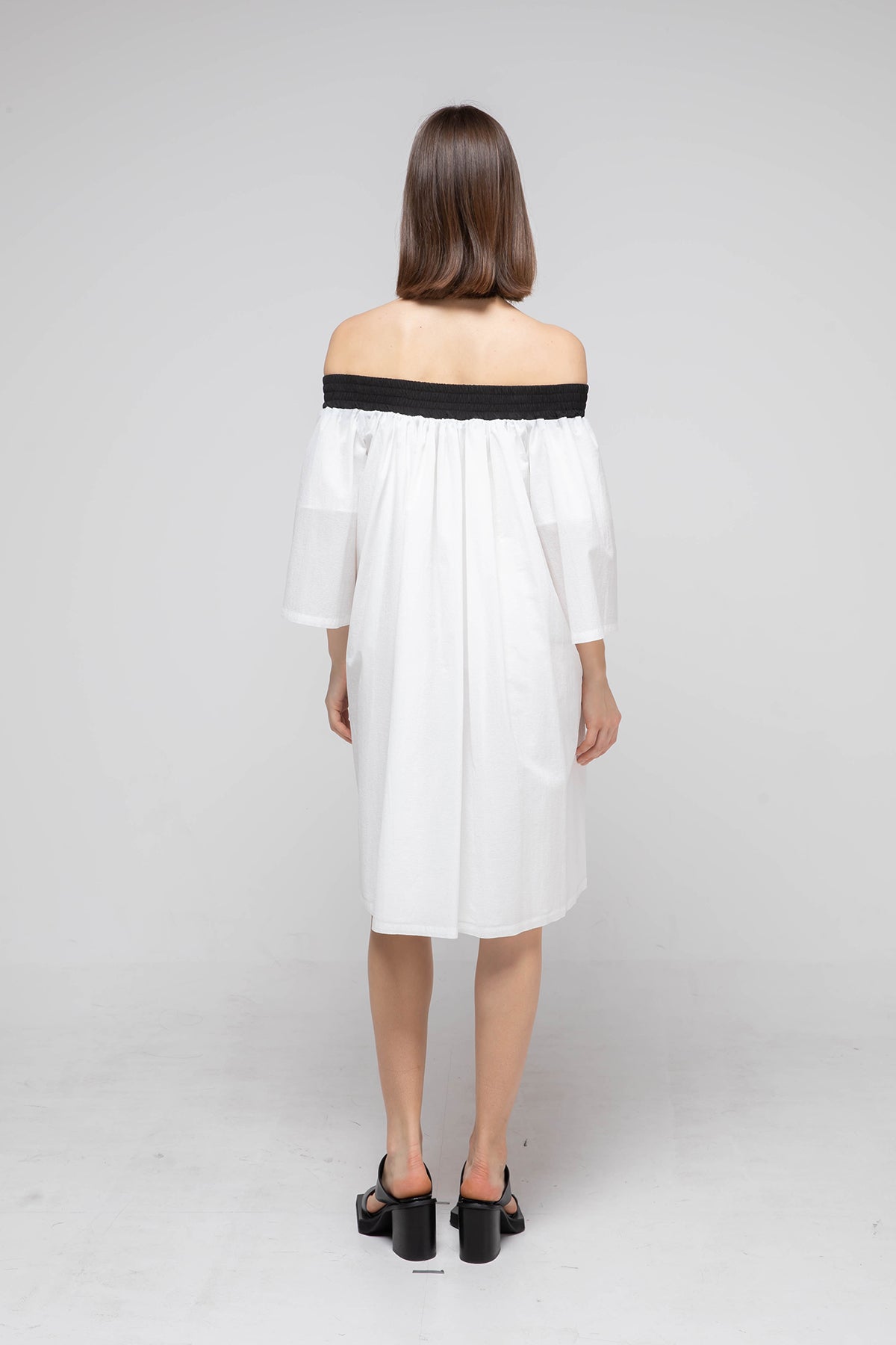 فستان قطعة واحدة بدون أكتاف بتصميم فضفاض يمكن ارتداؤه بشكل مريح لكل من الخروجات العادية والمناسبات الأنيقة.
