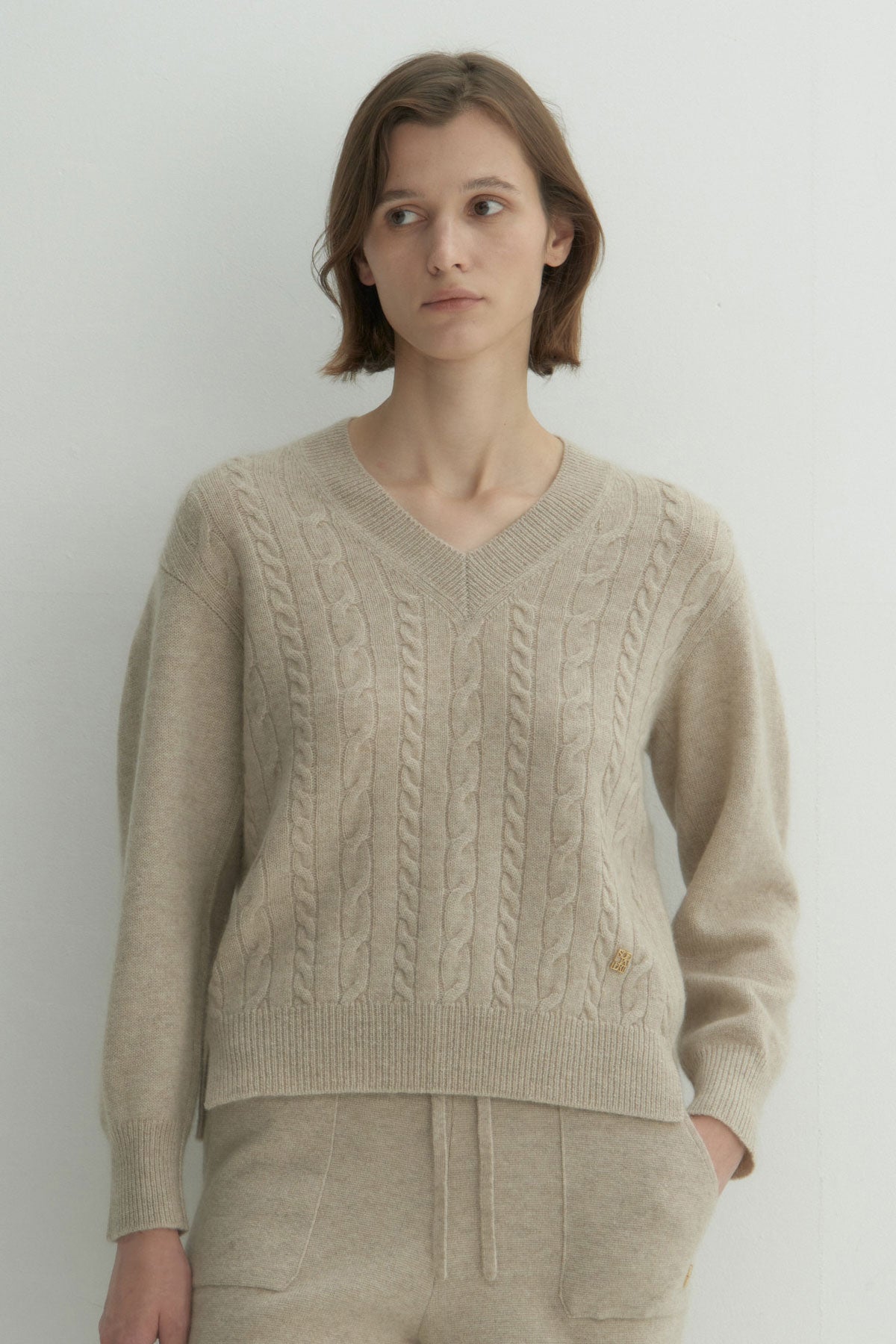 سترة كشمير 100% سارة كابل بلون الشوفان البيج