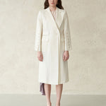 Double collar back slit silk long coat