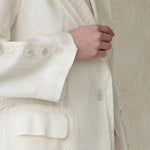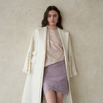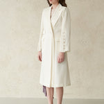 ivory long coata luxurious silk materiala cape-type design that can be opened with a sleeve buttonRecommended as a daily item with a neat fit accentuated coat.