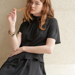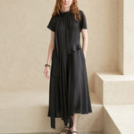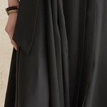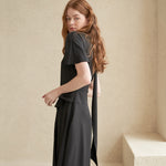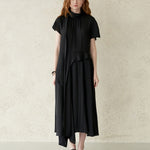 Black color long dressA design with unbalanced sleeves a material that drips and has a slight glossTie turtleneck design allows styling with a scarf or ribbonThere is also a strap on the waist, so you can style it in a variety of styles.One-piece dresses as an accent