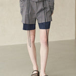 Layered style drape pocket shorts pants blue