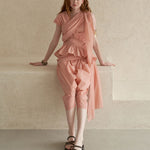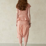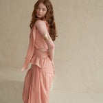 light africot colored harem pantsUnbalanced Pleated Layered PantsIt's lined, so you don't have to worry about it being see-through.Harem pants with a very long hem design for easy activitiesThree-quarter length, long-sleeved items with a sense of season from spring to early fall