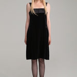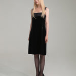 Satin pleats velvet dress with V logo