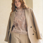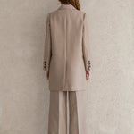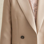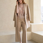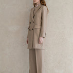 a desert sand-colored double jacketa neat fit that falls off without unnecessary fussMade of a blend of wool and silk, it has a luxurious and sturdy texture.Style up when worn with set-up pants