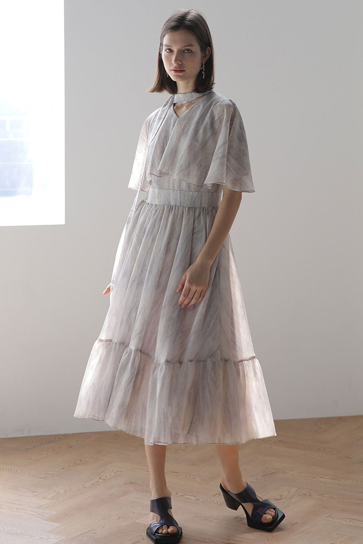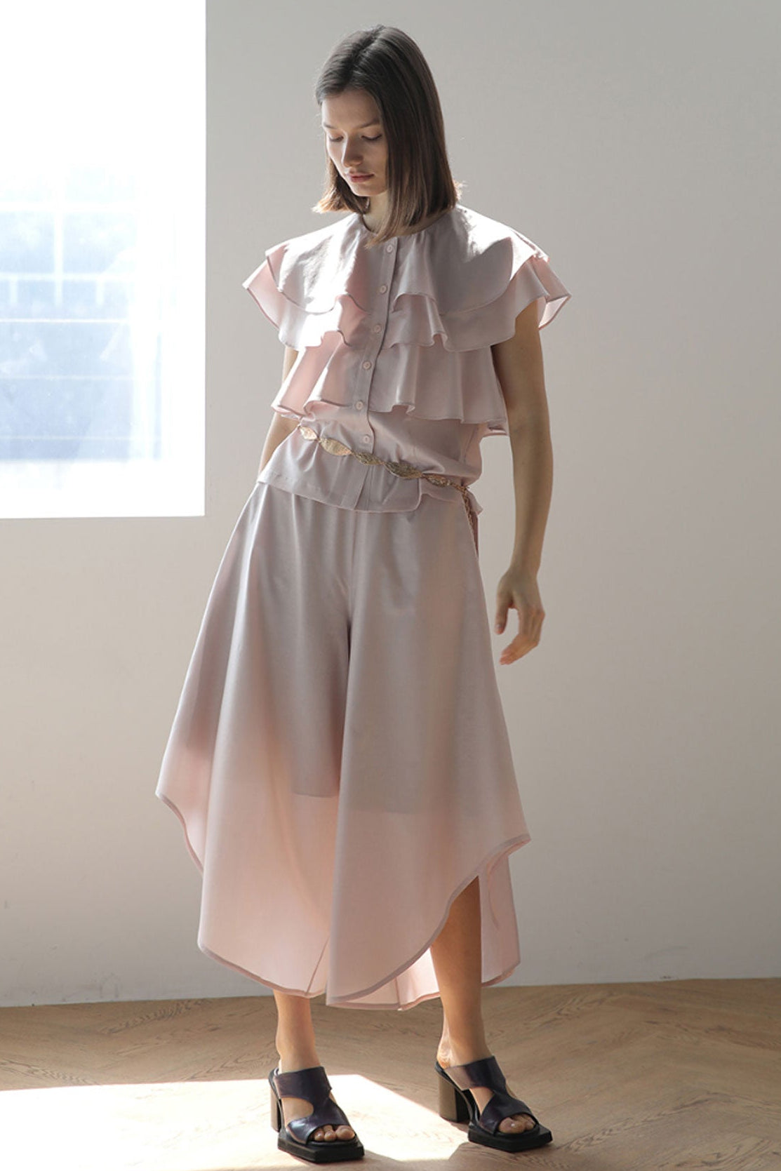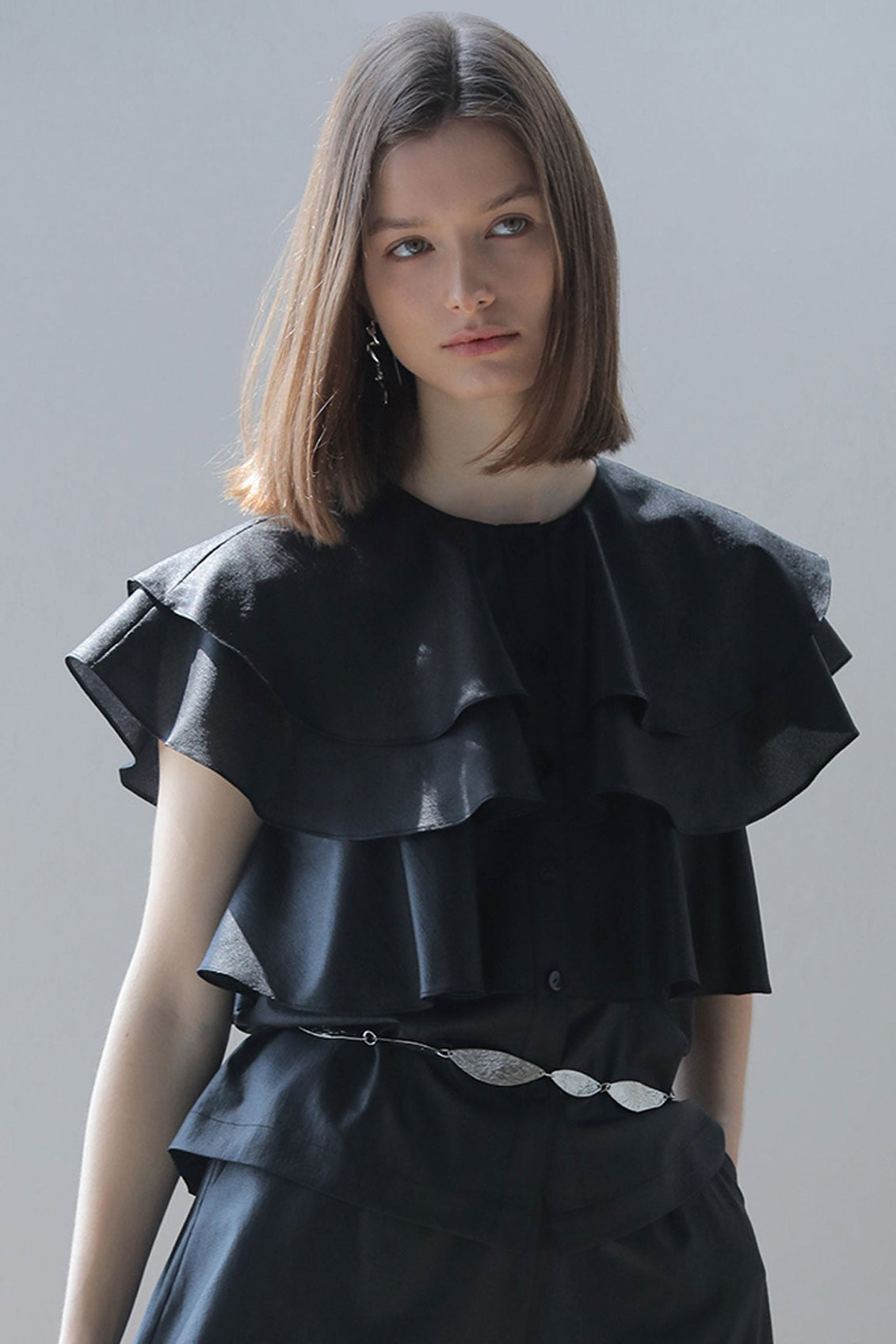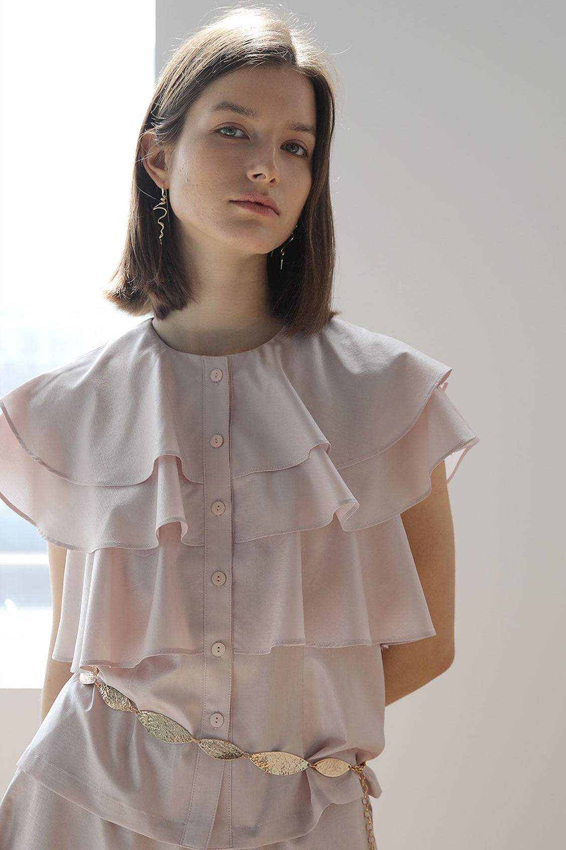 Loose fit 3-tier ruffle sleeveless blouse beige