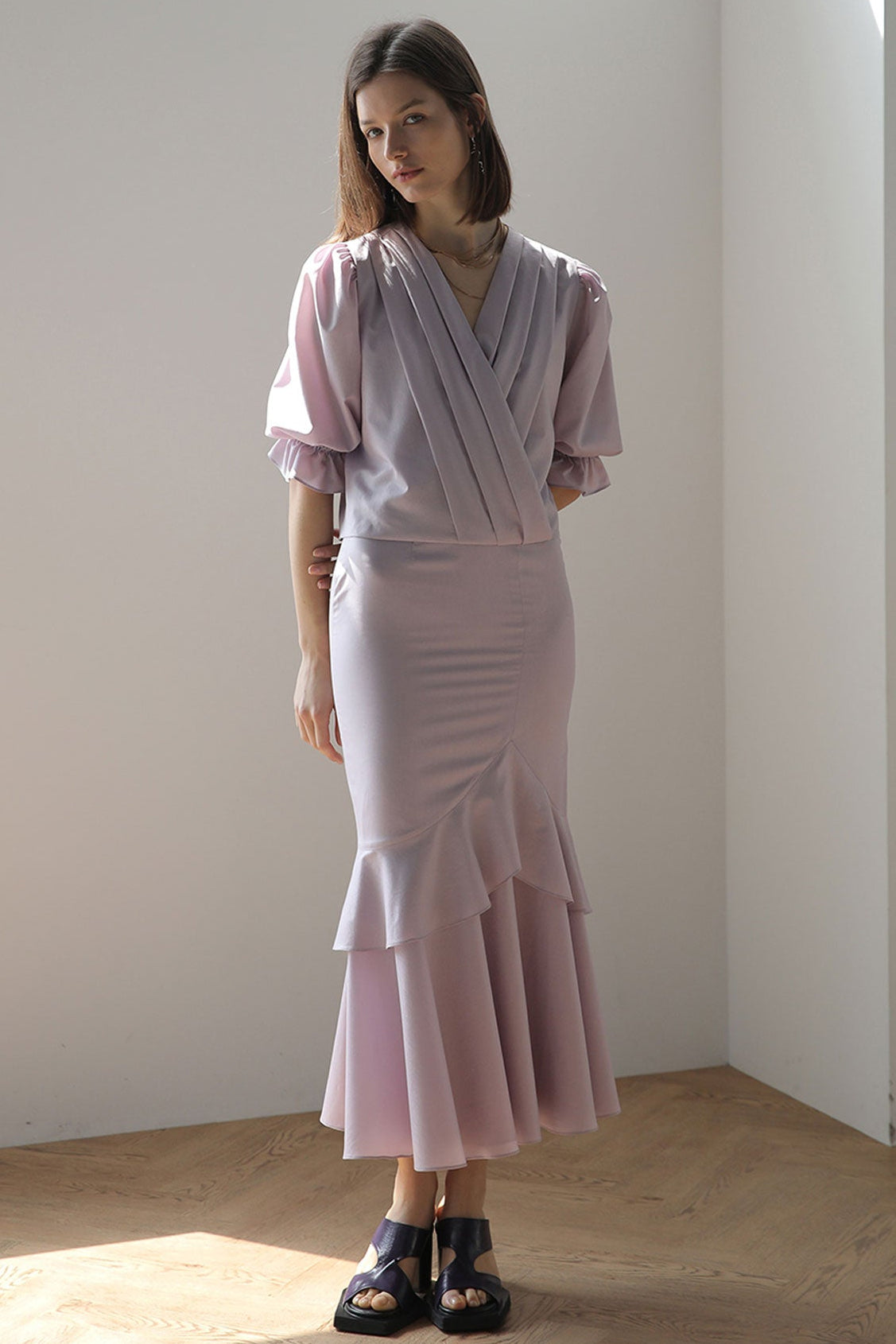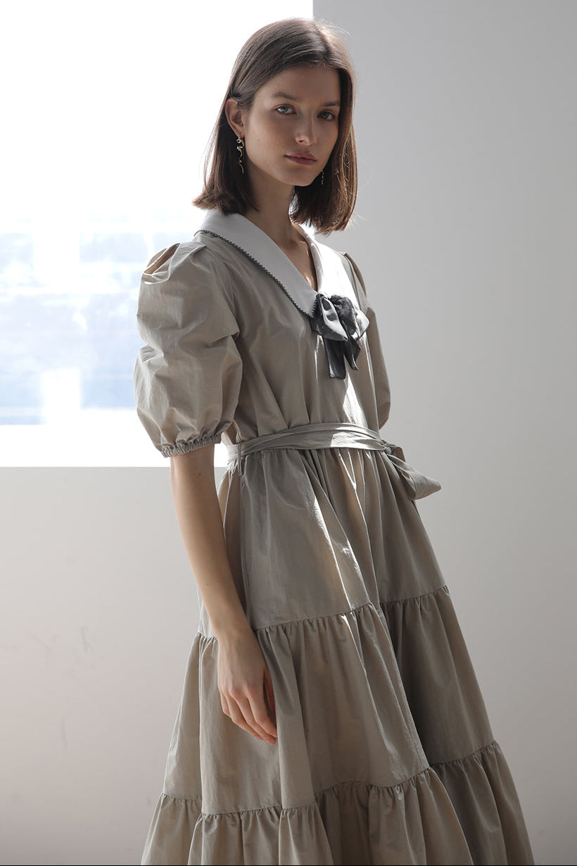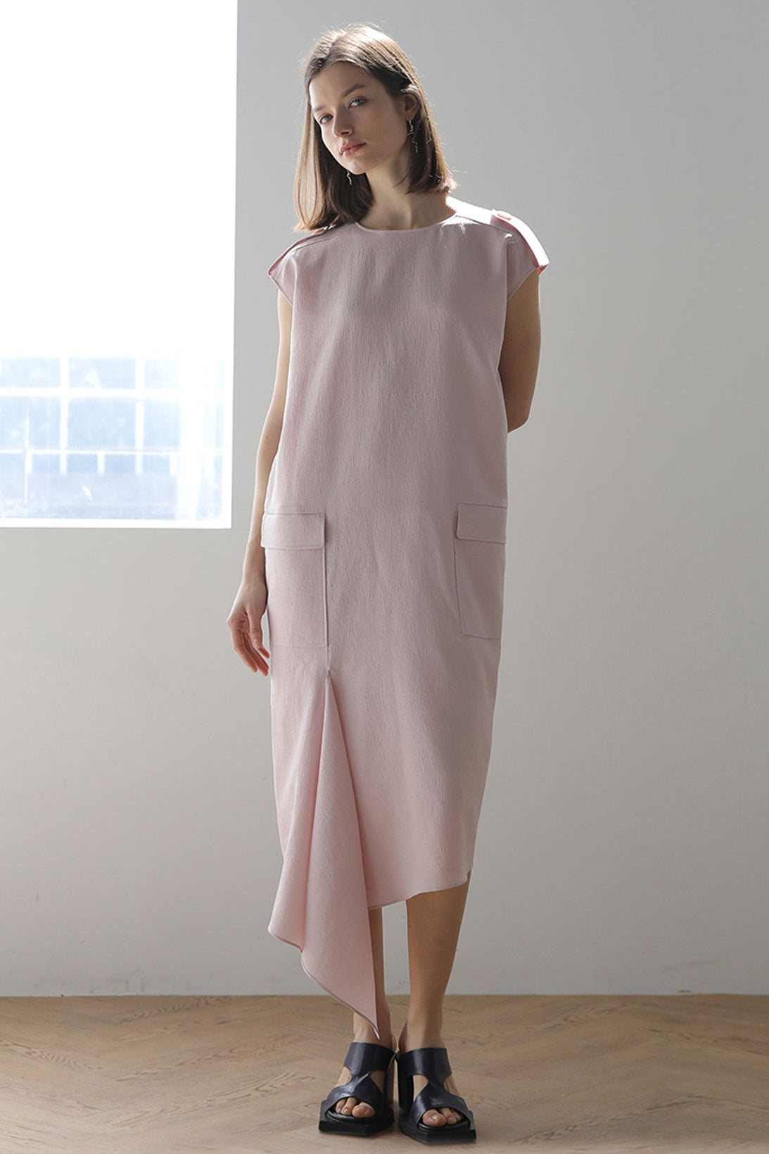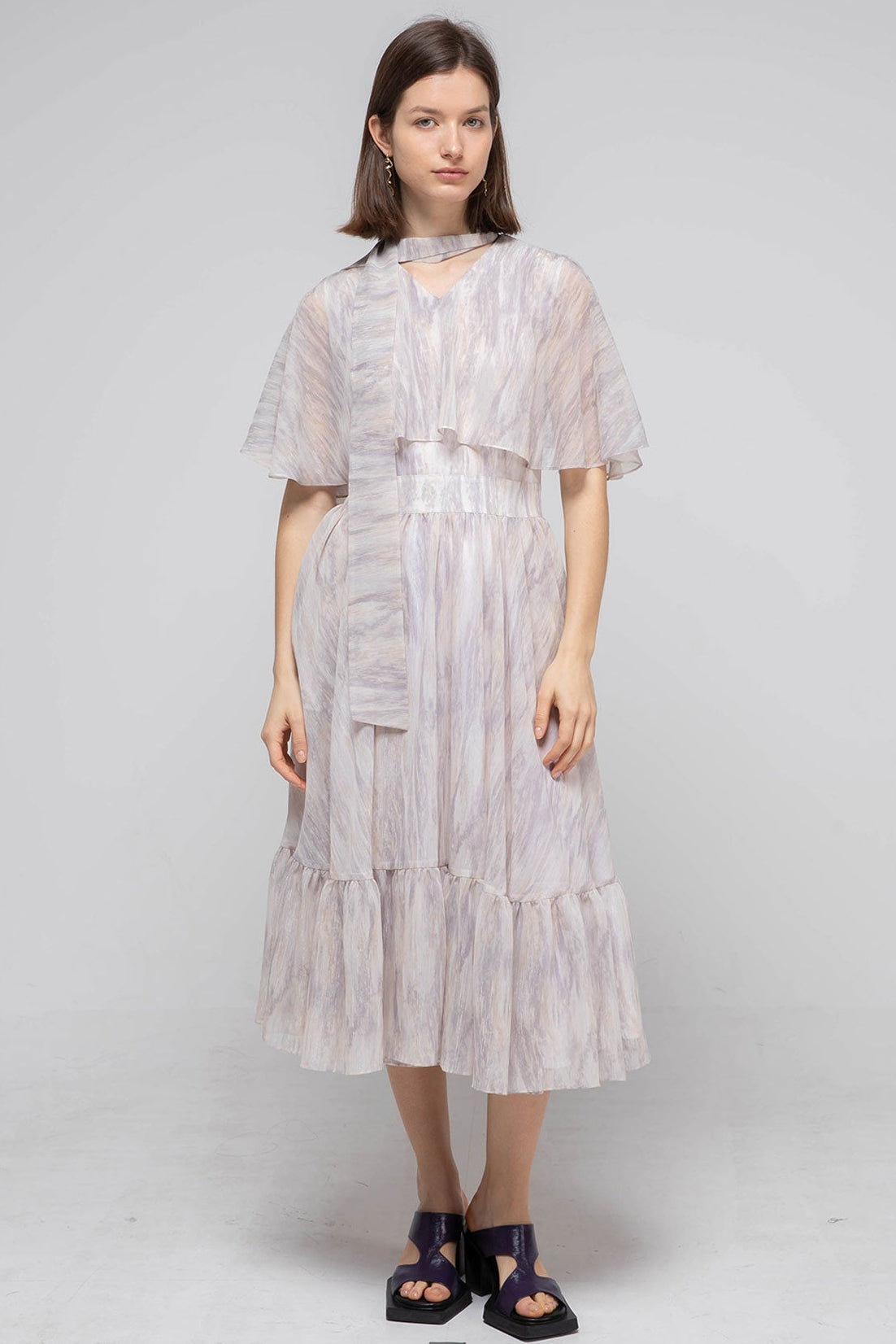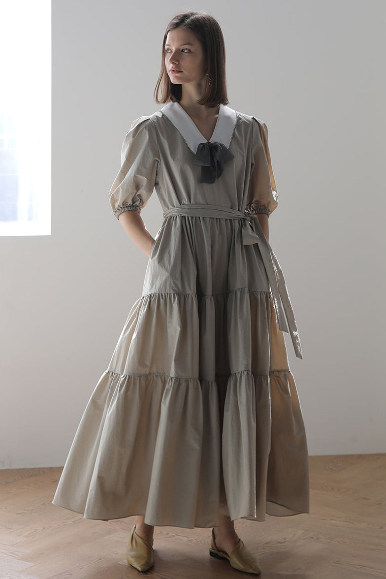 Loose fit 3-tier ruffle sleeveless blouse beige