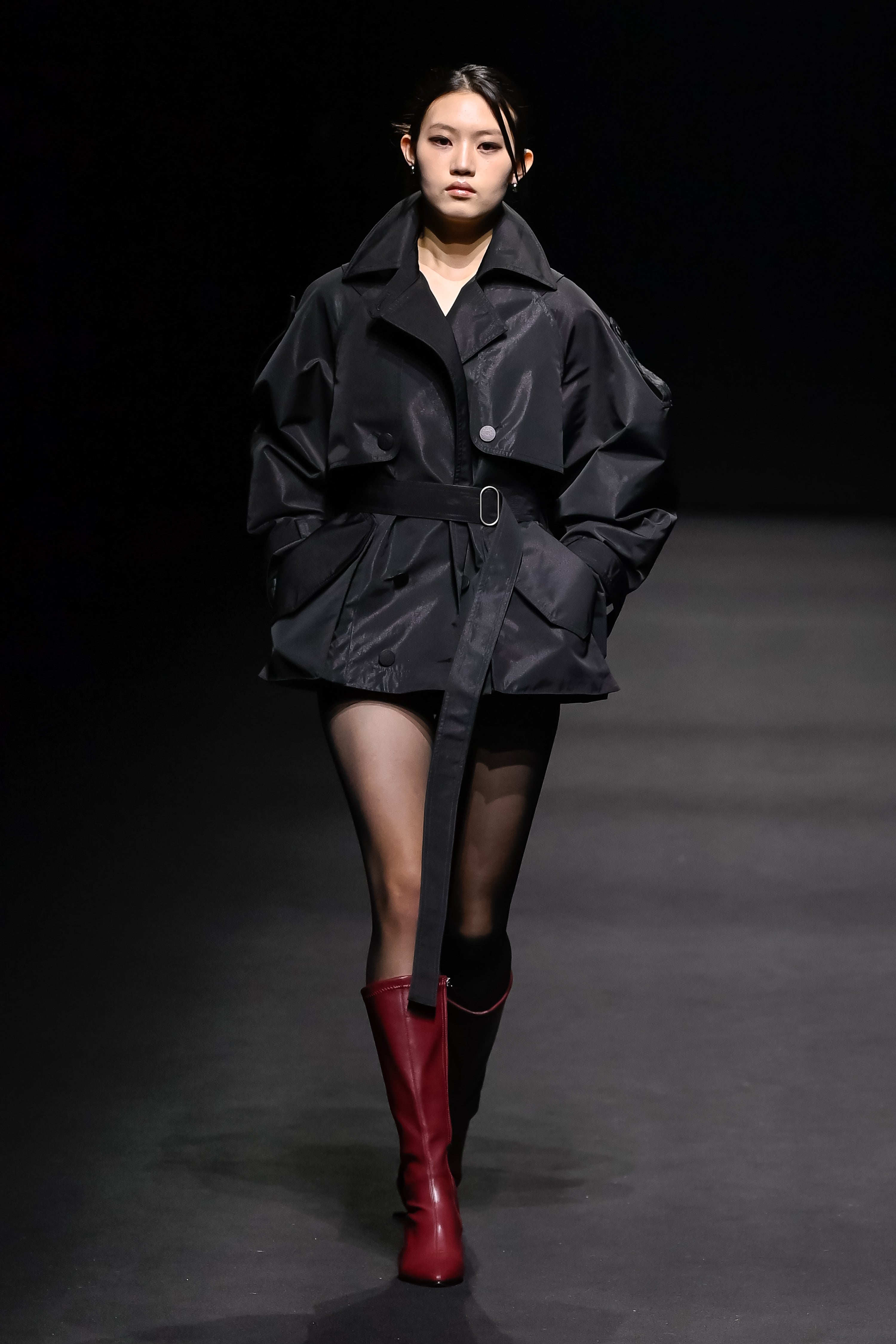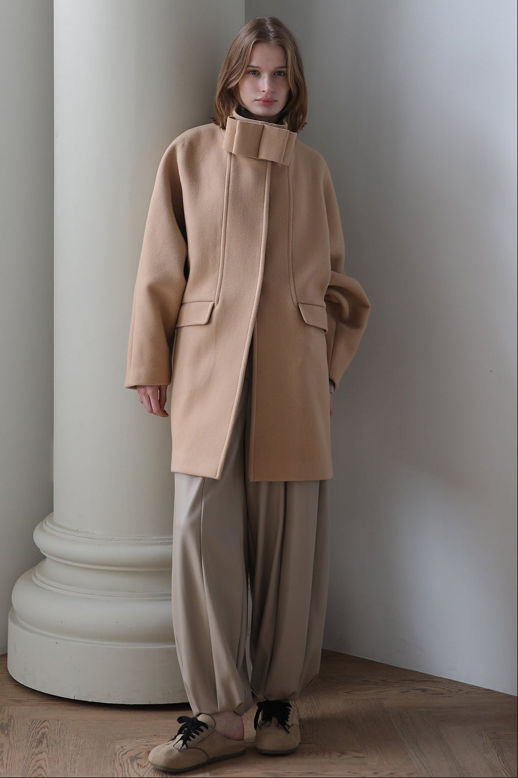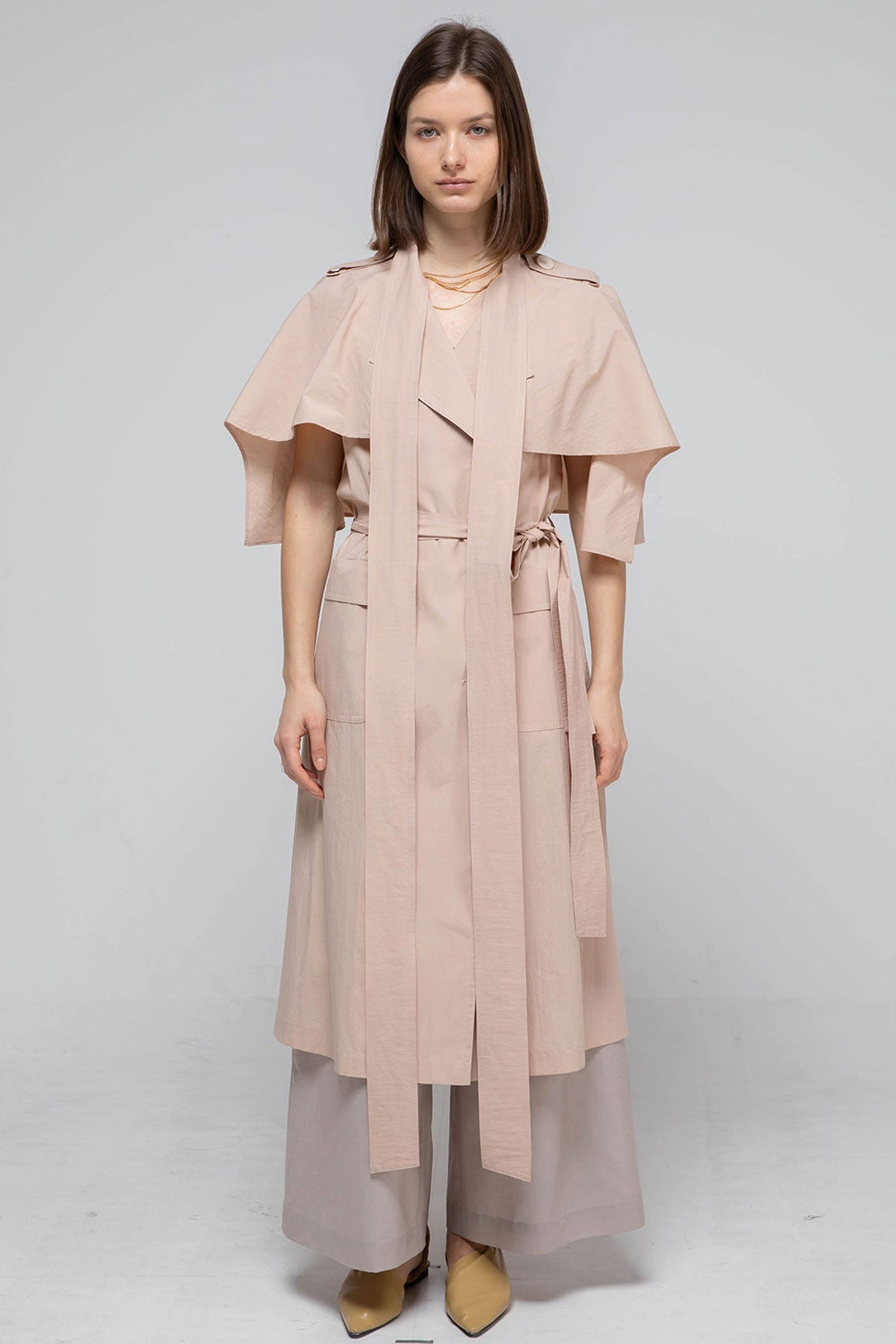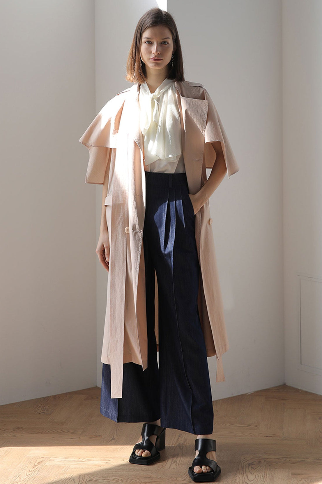 Loose fit cutout cape sleeve asymmetric trench coat black