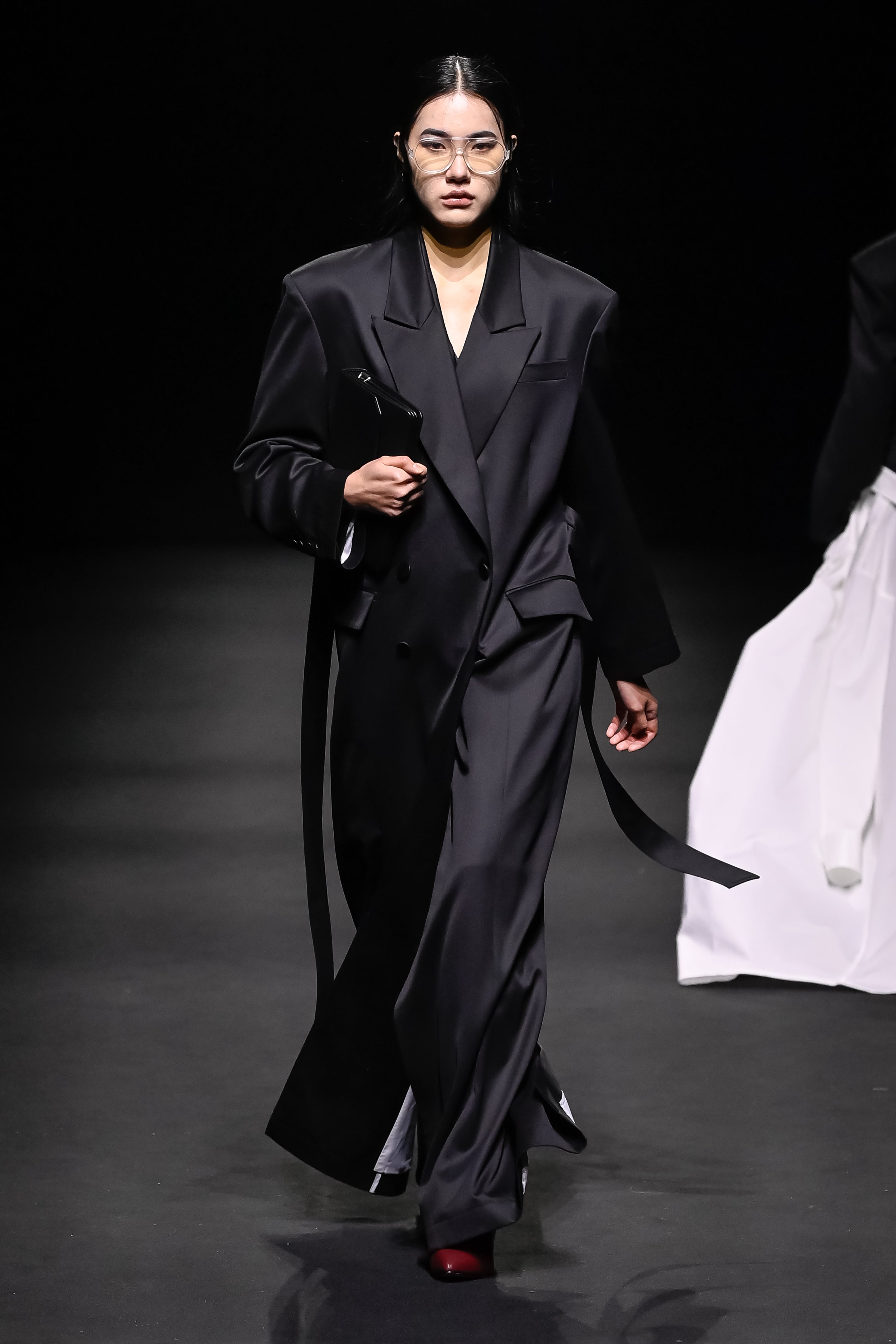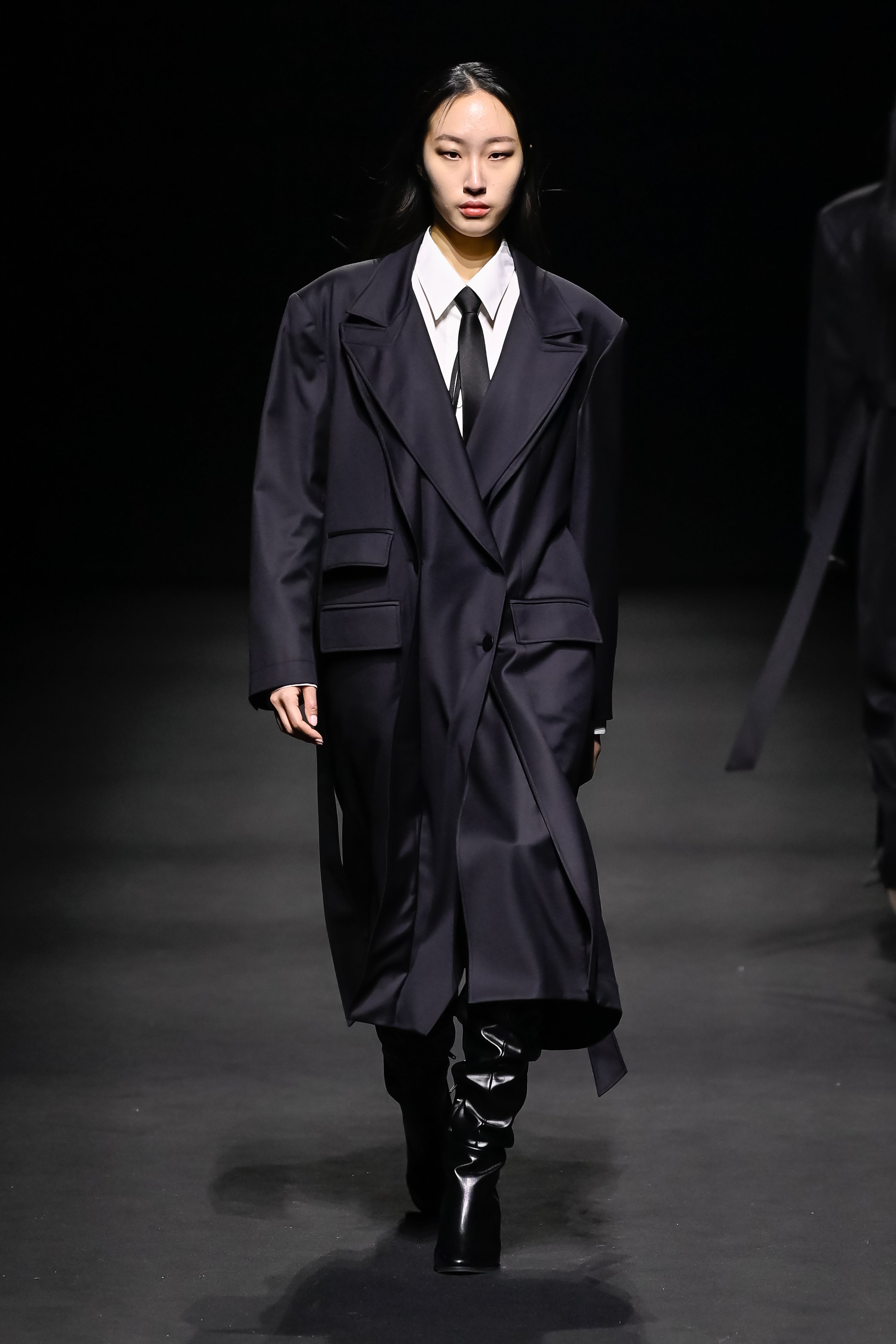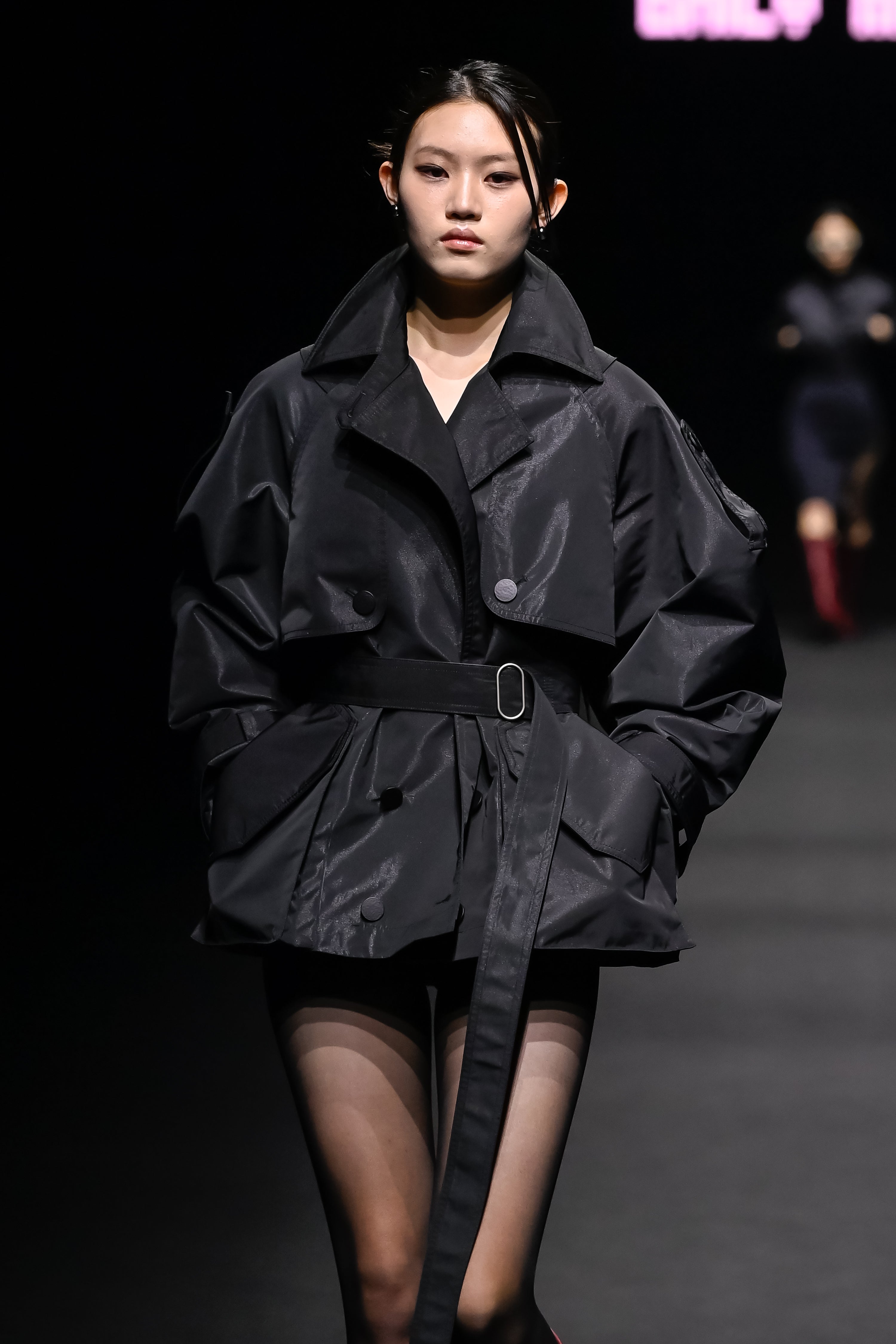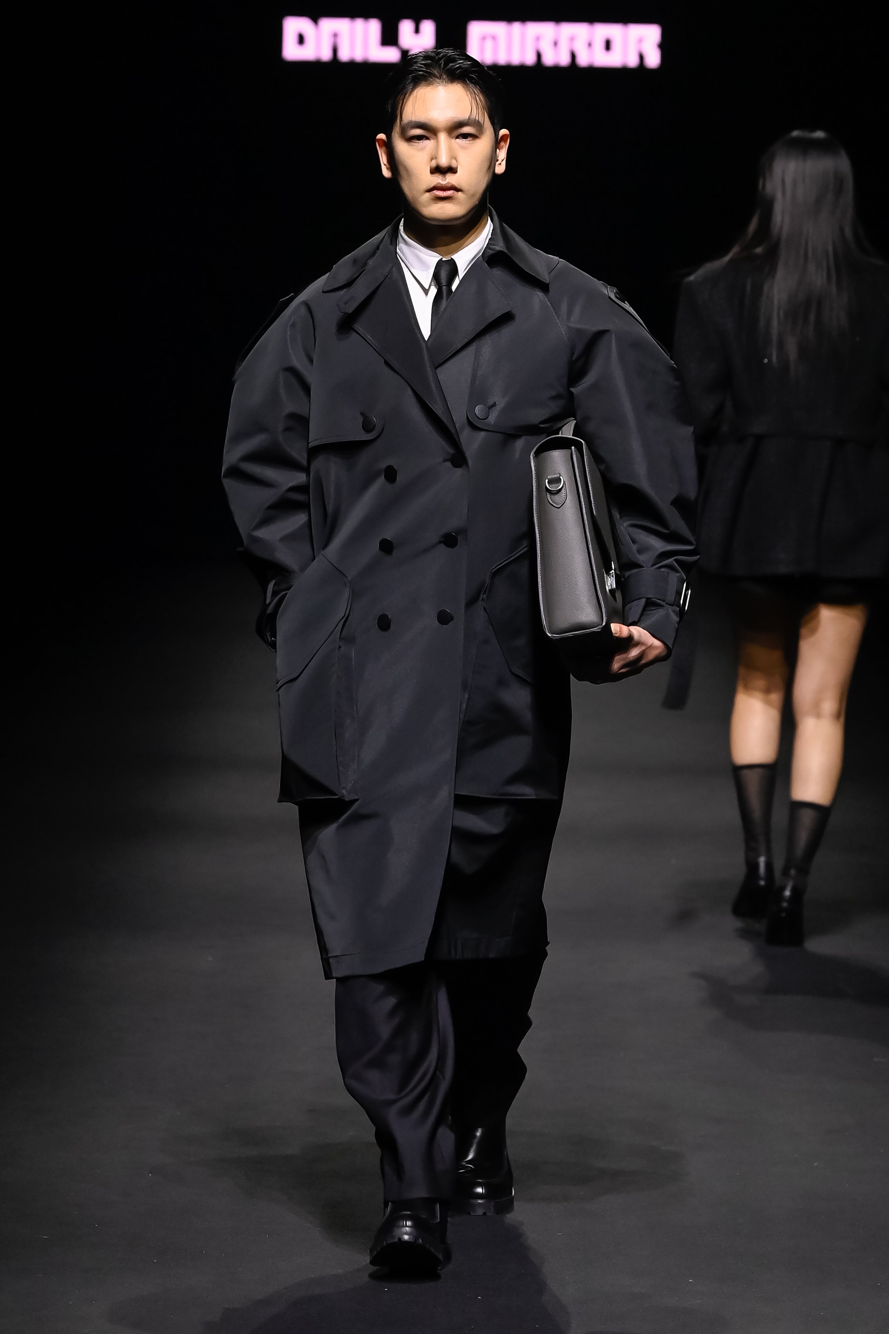 Loose fit cutout cape sleeve asymmetric trench coat black