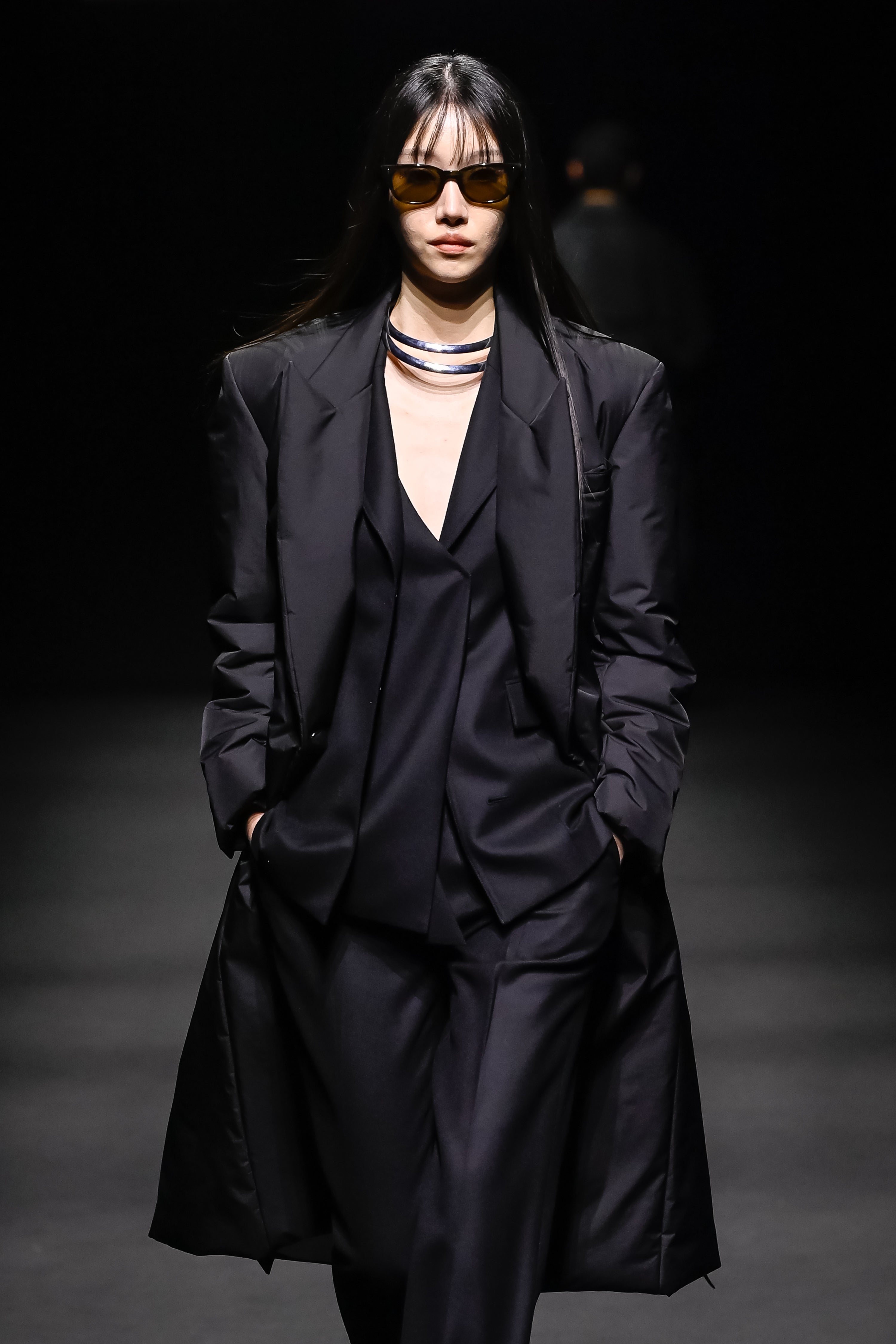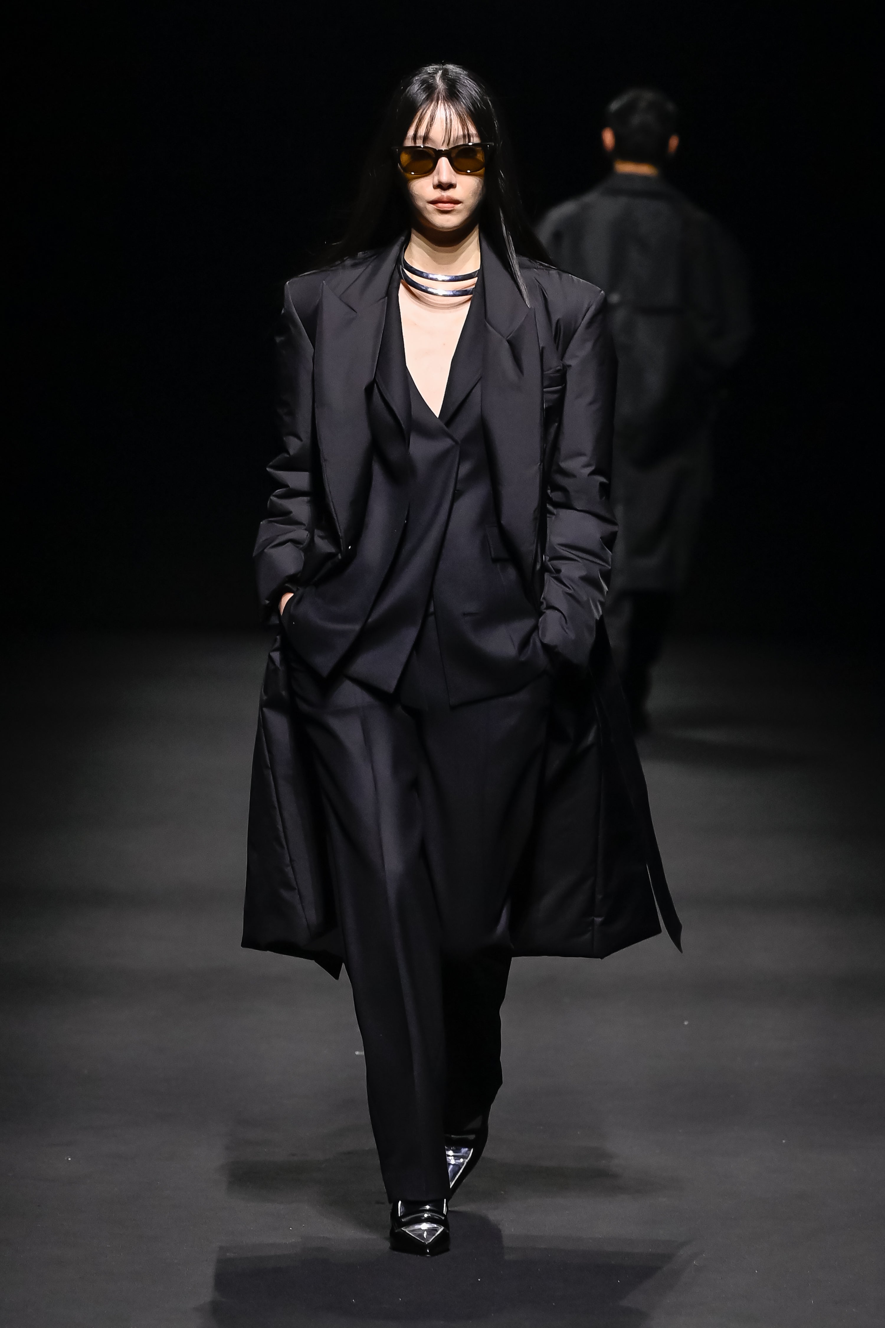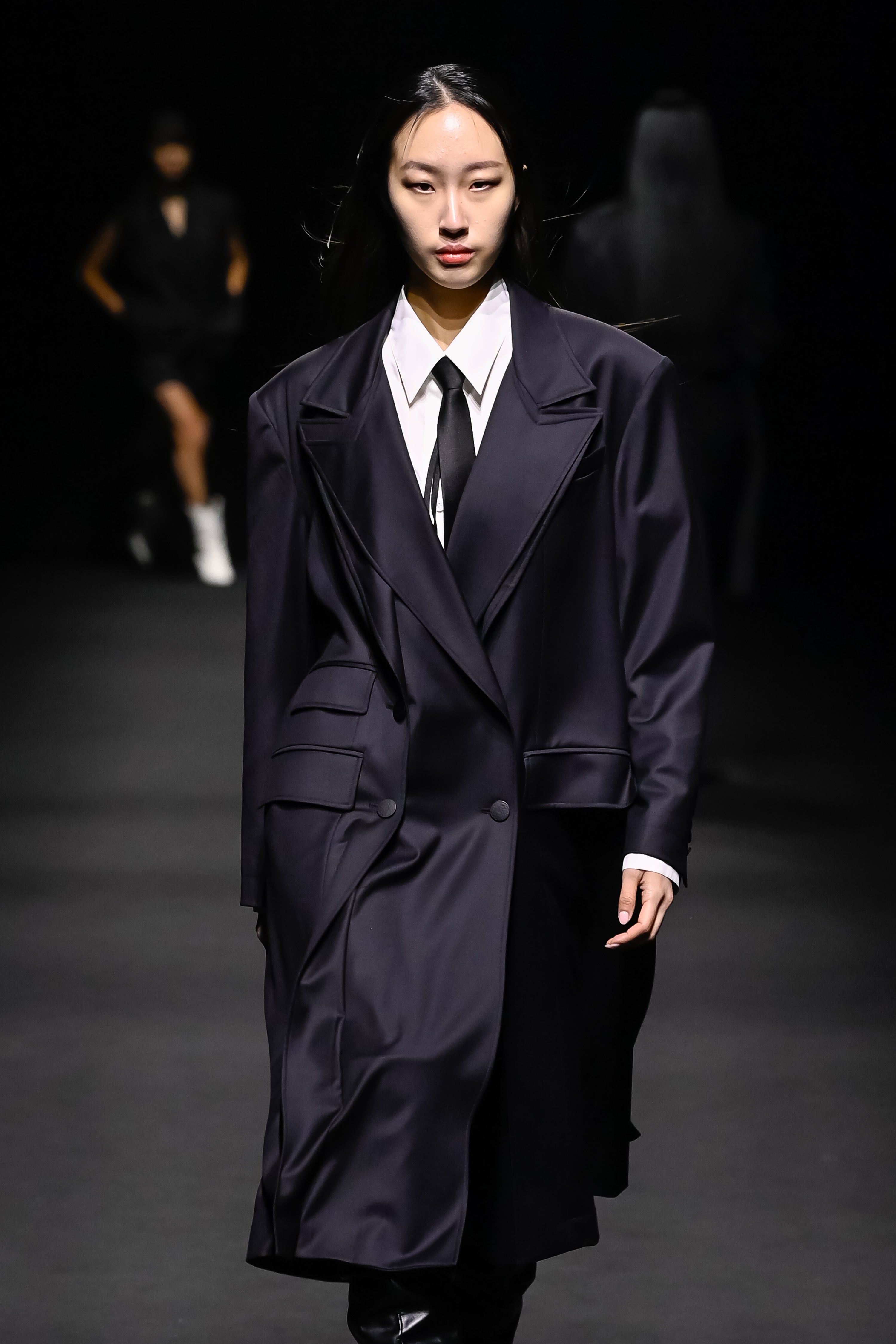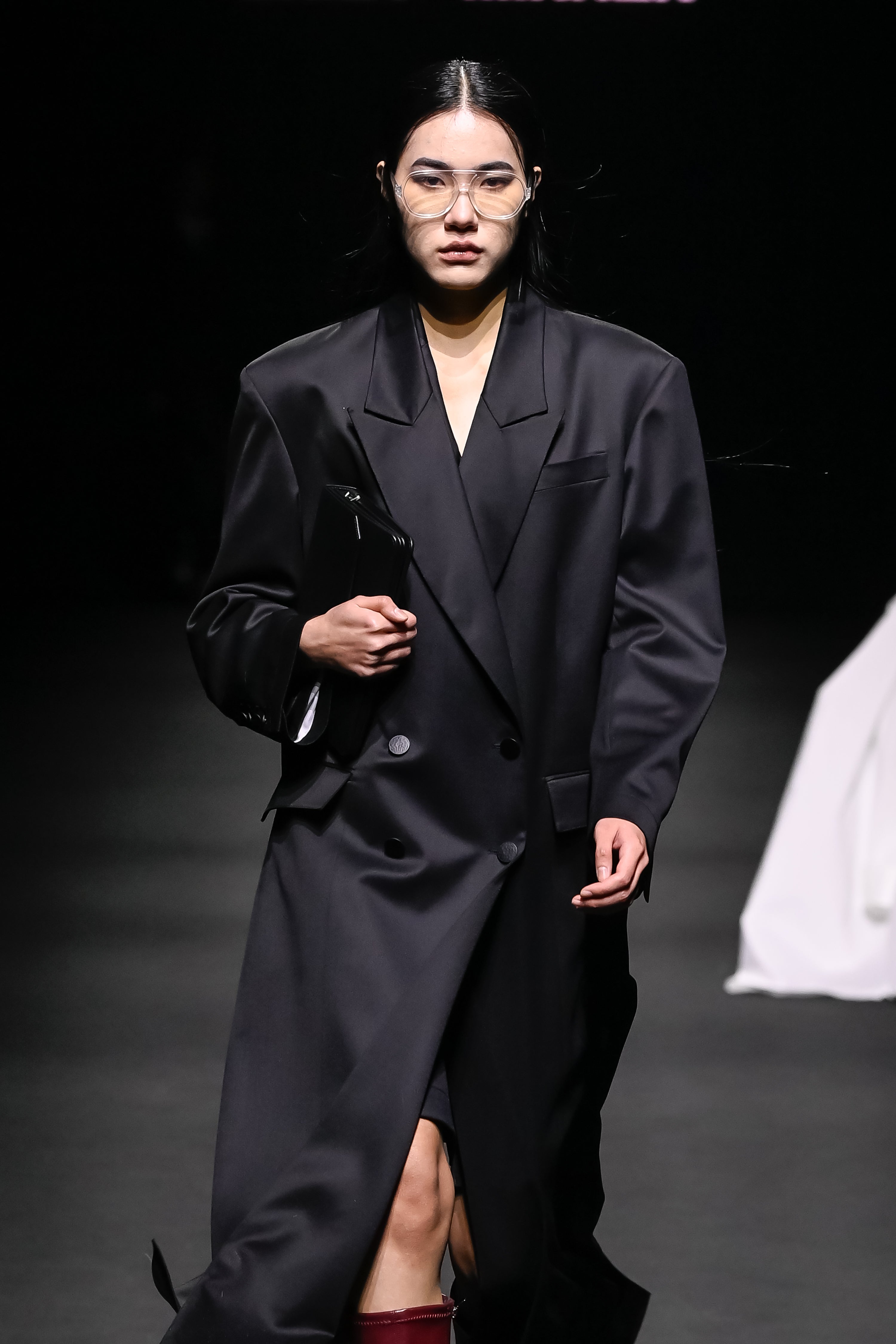 Loose fit cutout cape sleeve asymmetric trench coat black