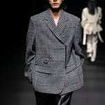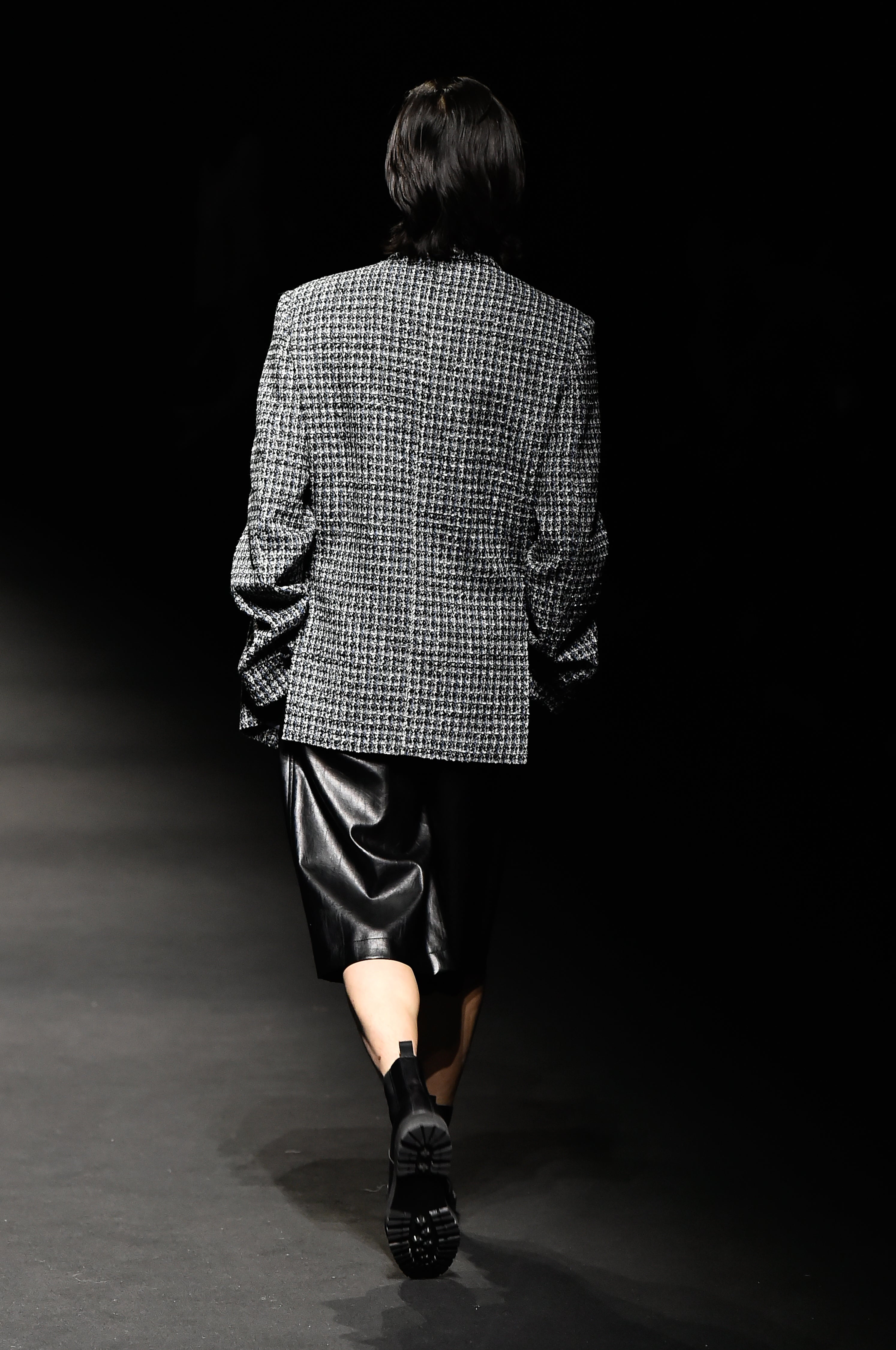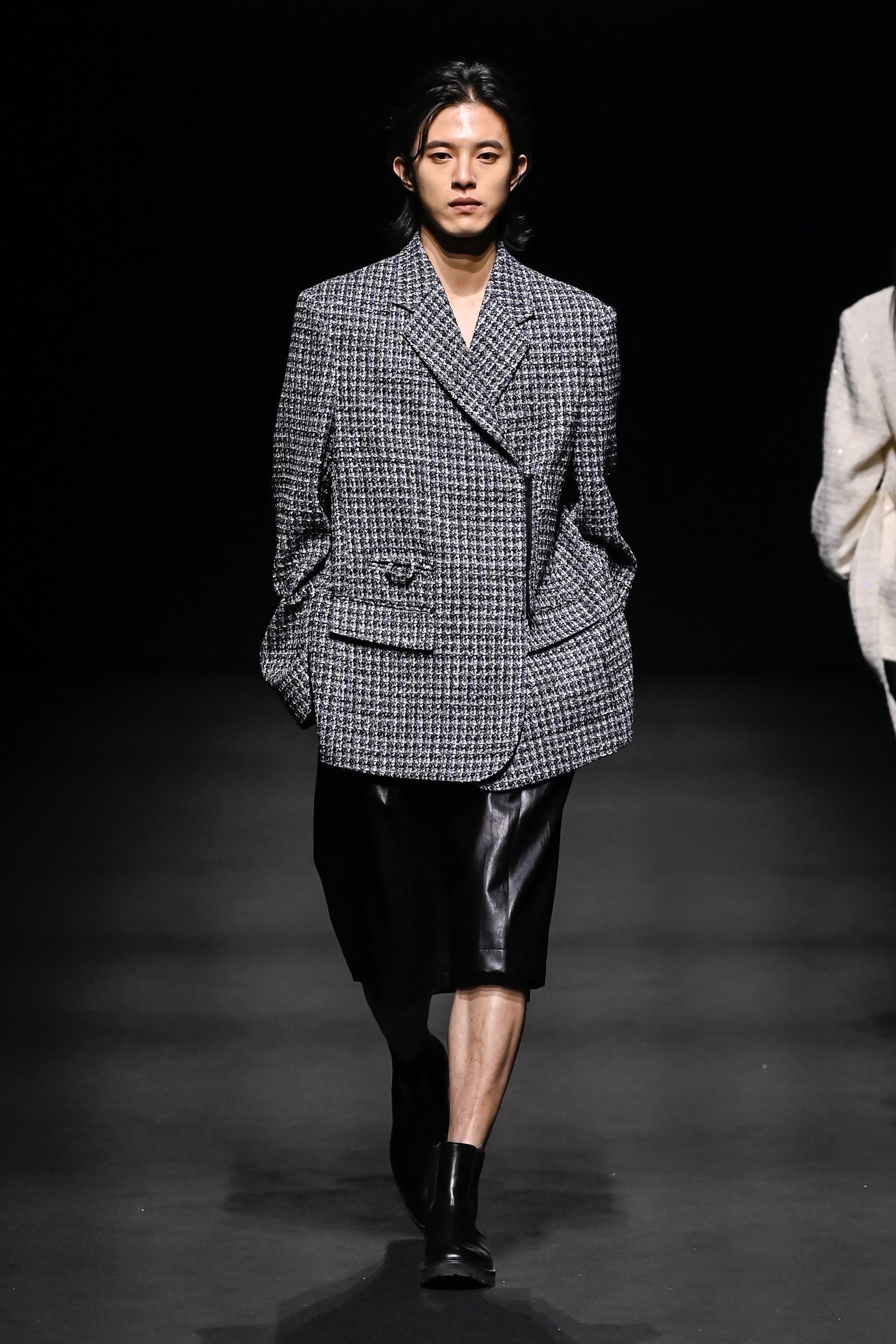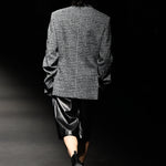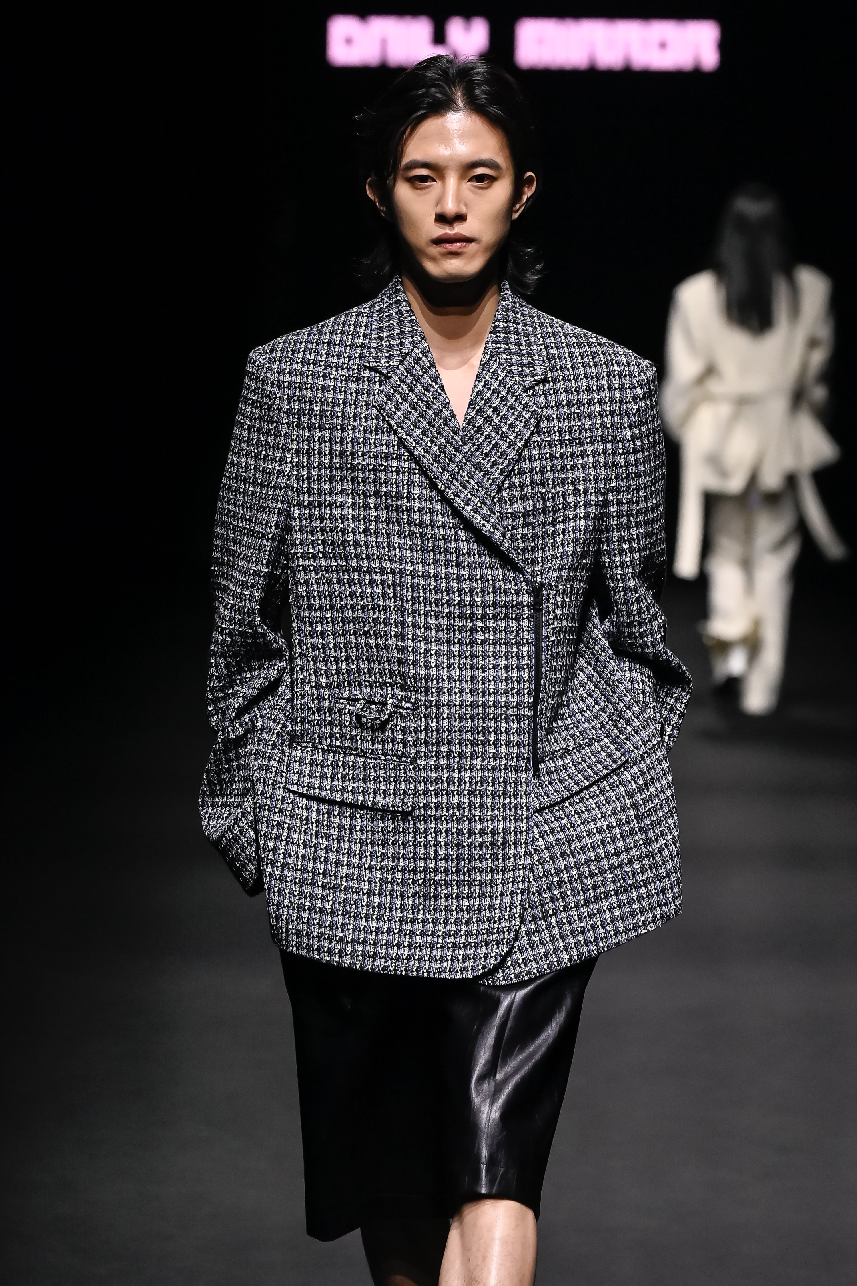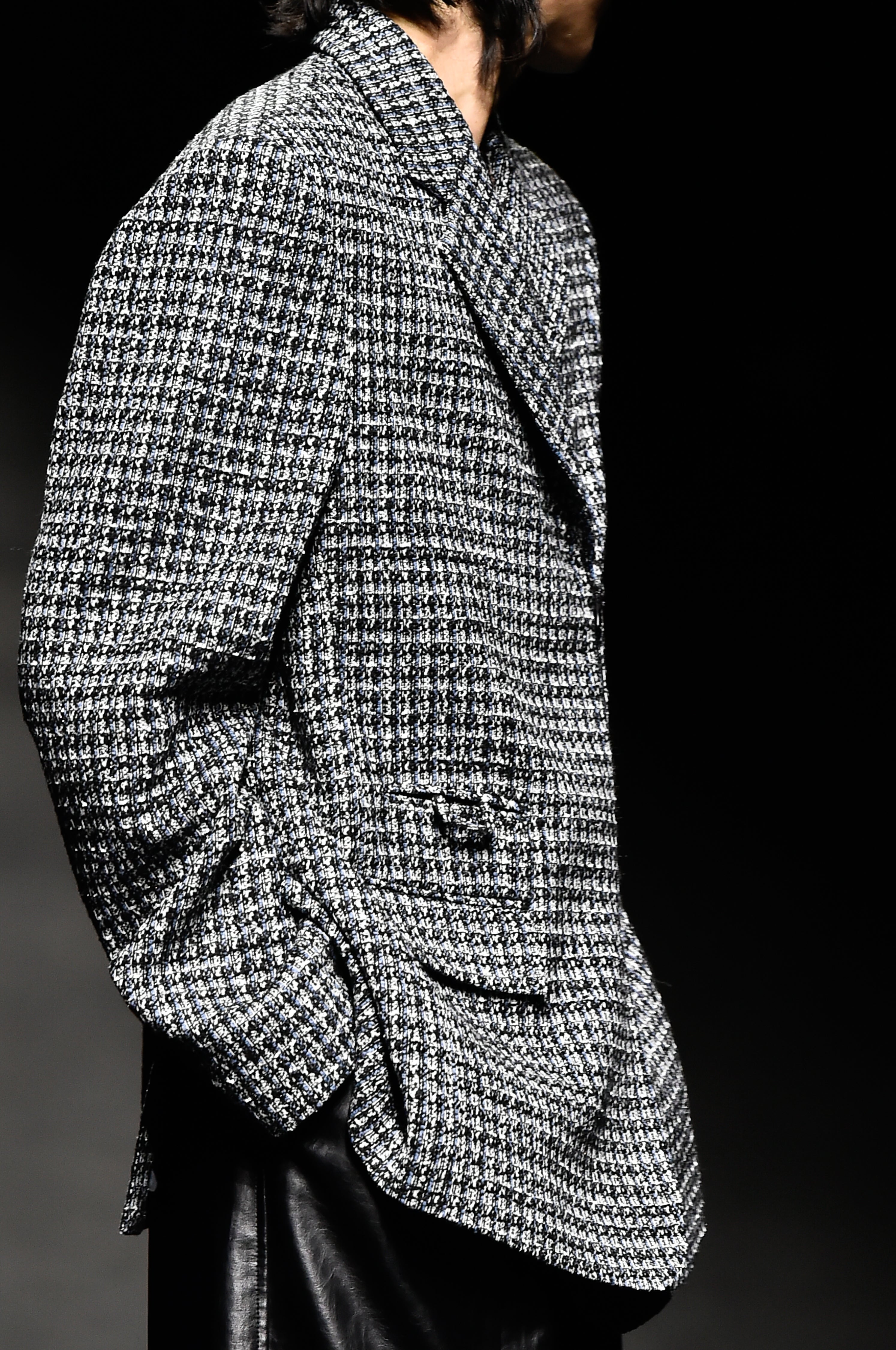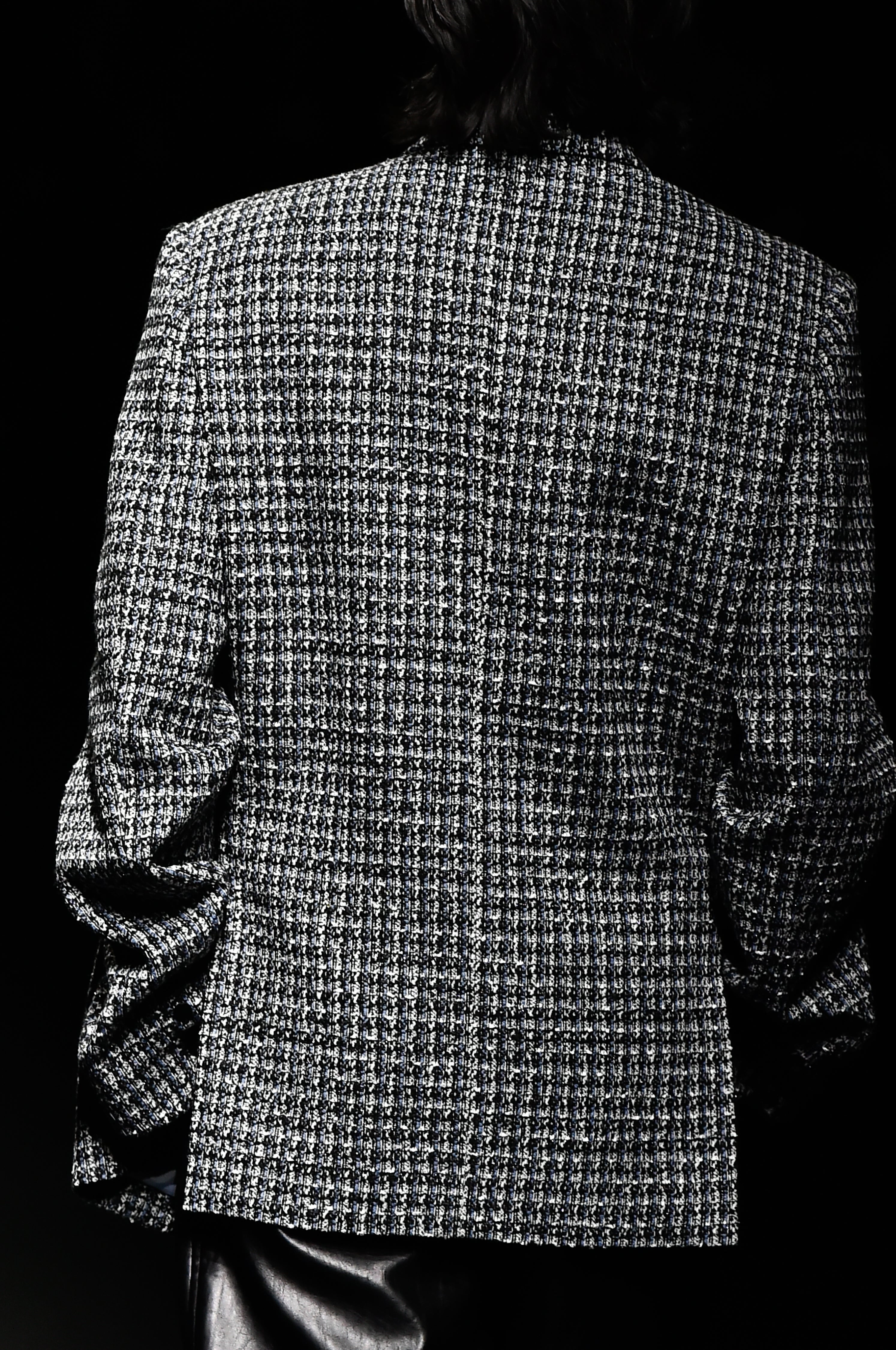 Blue front zip detail tweed jacket