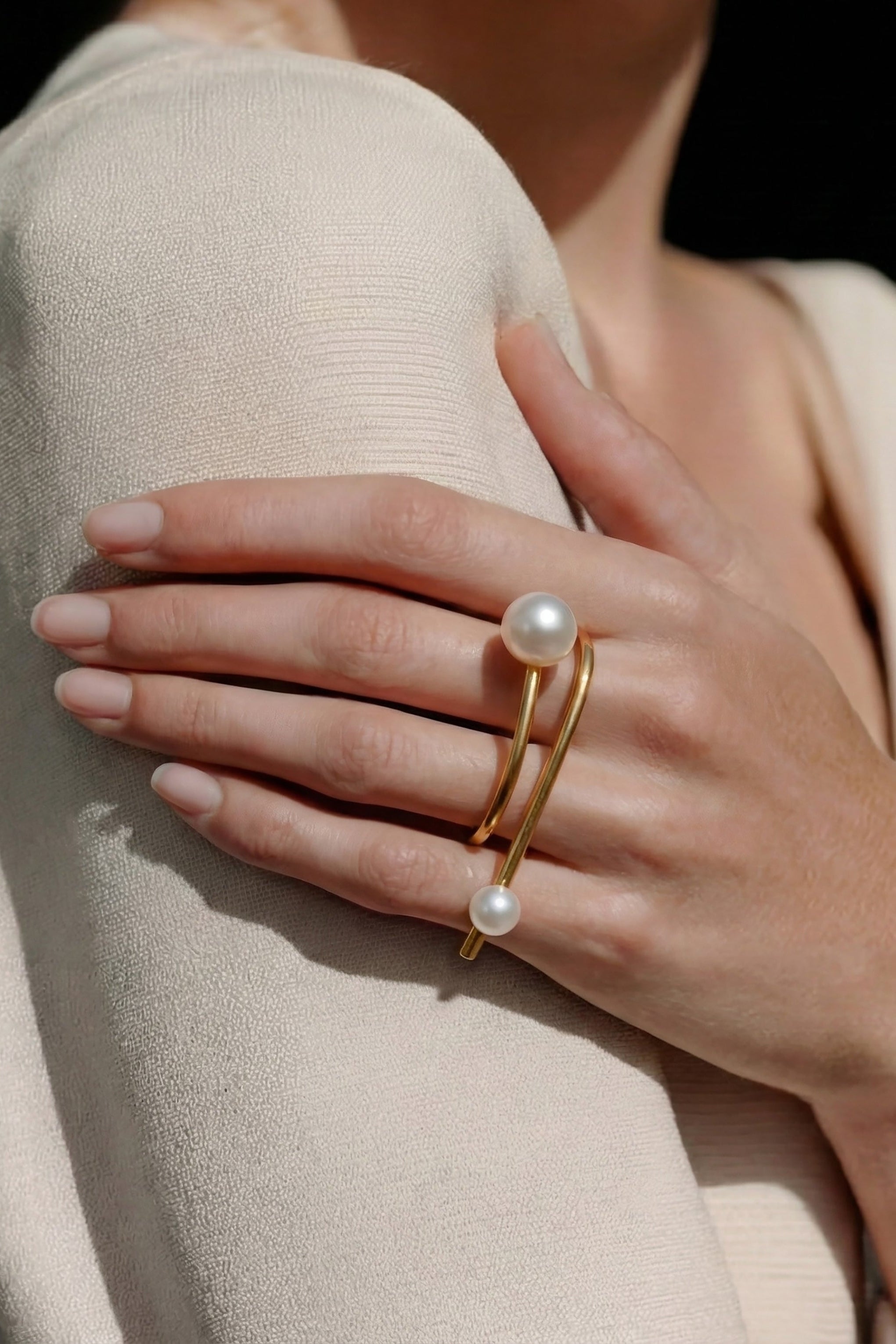 Space & rhythm double twist pearl ring