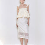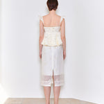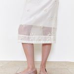Perlen bestickter Midirock Elfenbein