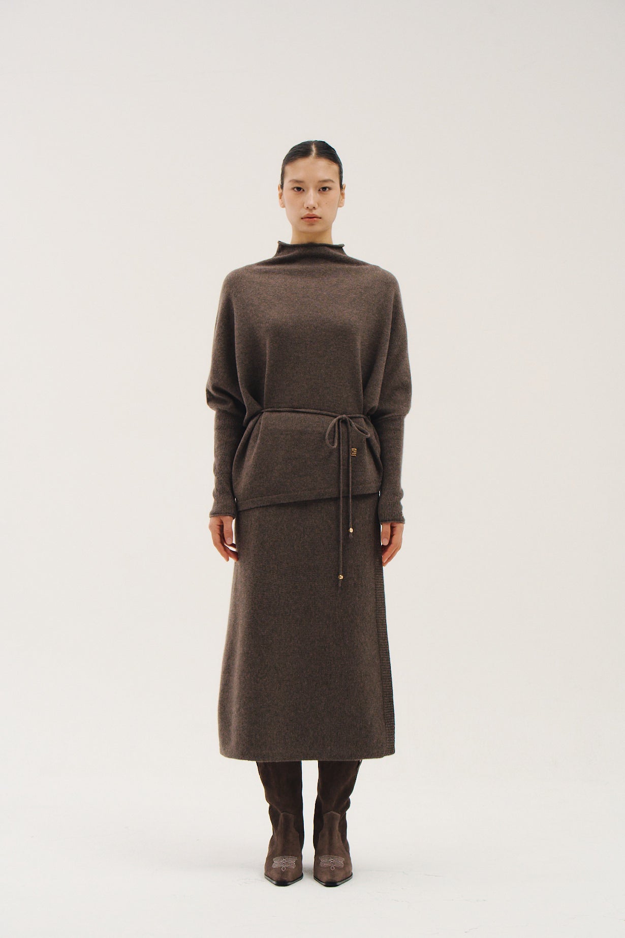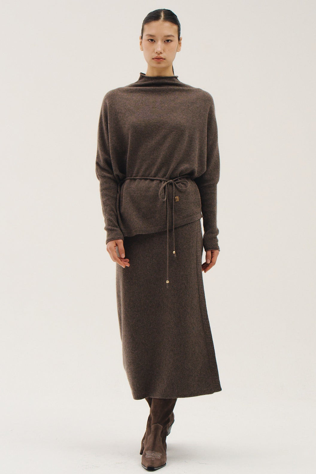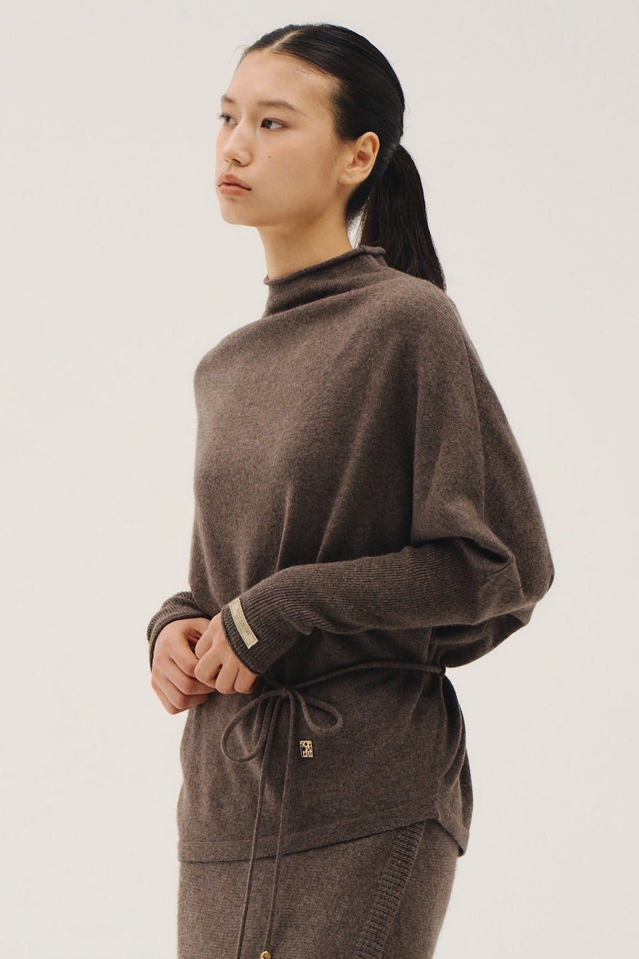 Cashmere100% Rhea String Half Neck Sweater Sepia Brown