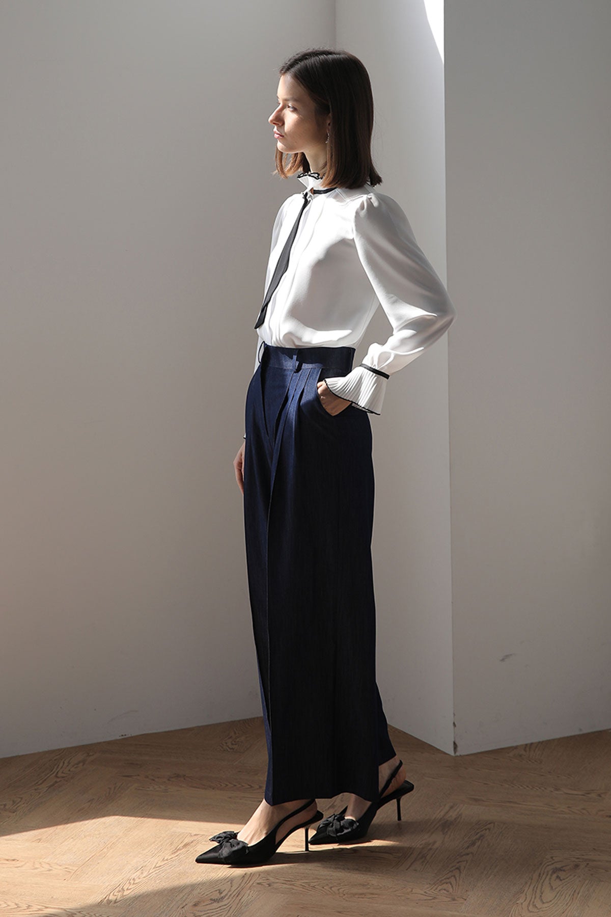 Classic and modern point with black tie details