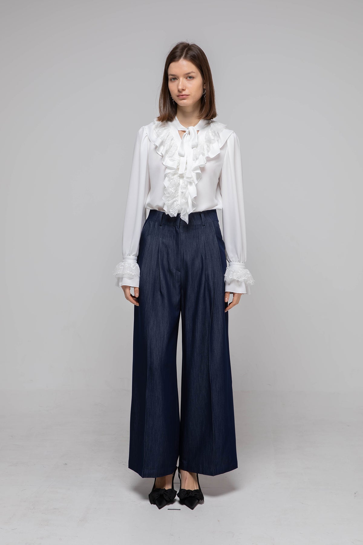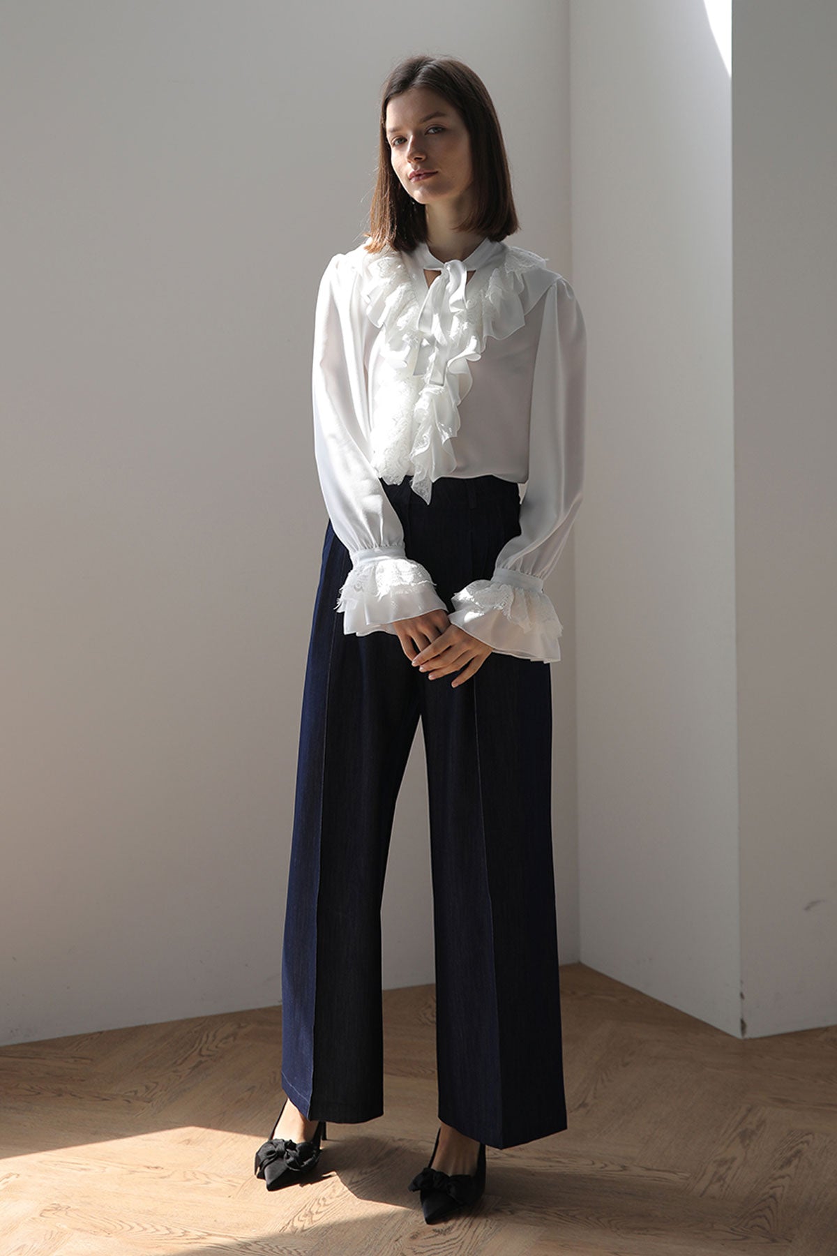 V-neck ribbon lace blouse - fasfas