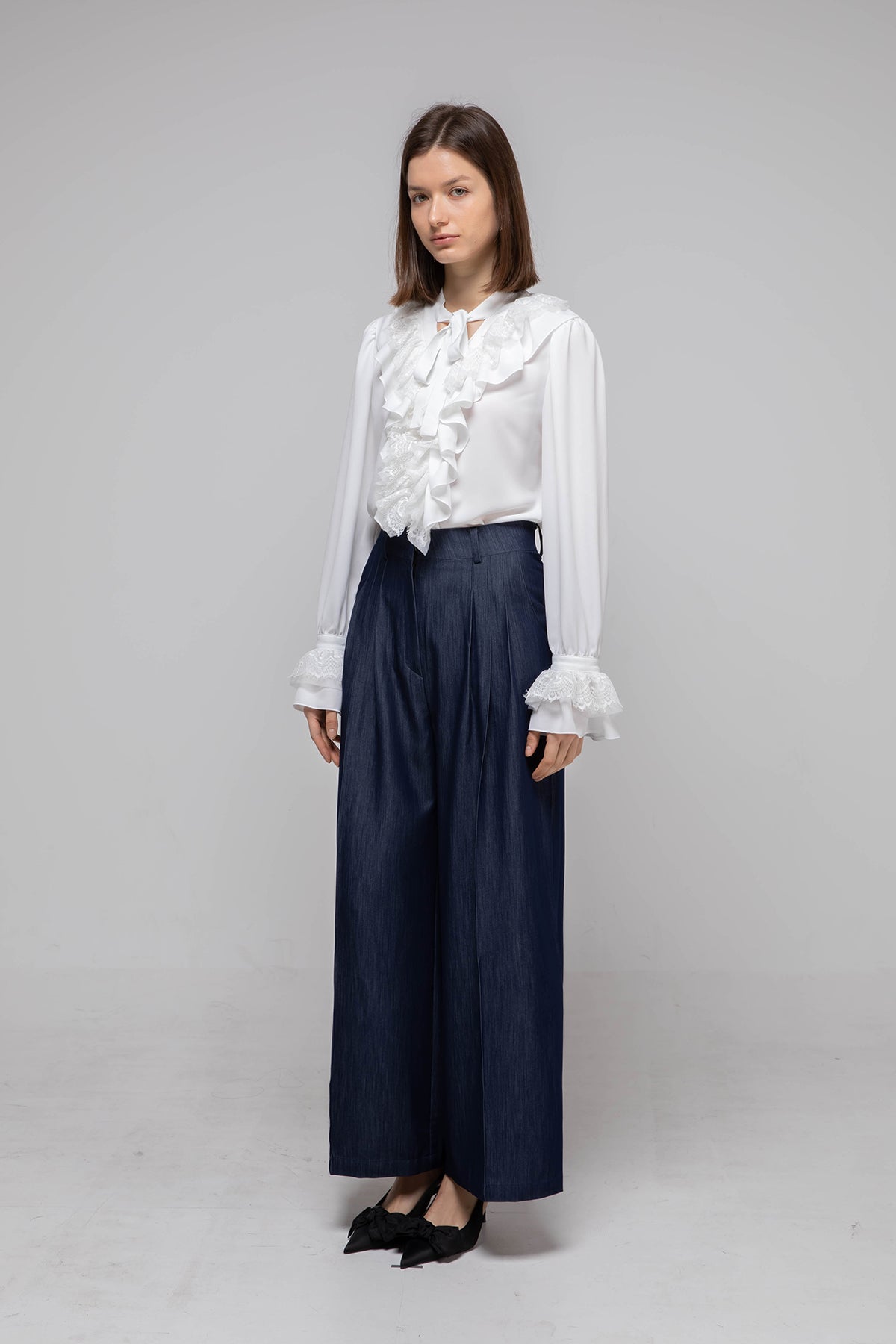 Complete the gorgeous mood with lace material and shirring details