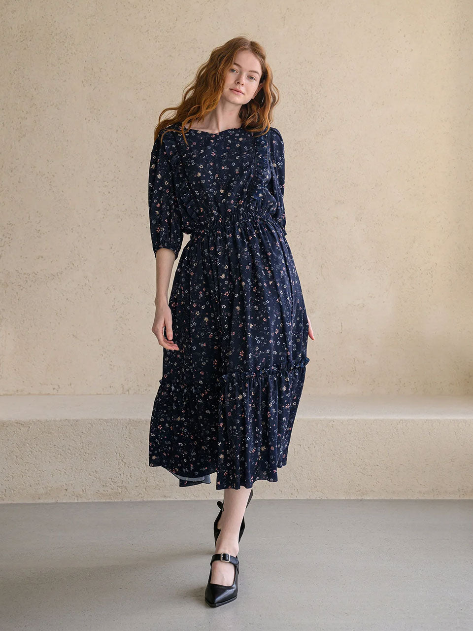 Flower pattern lovely dress navy