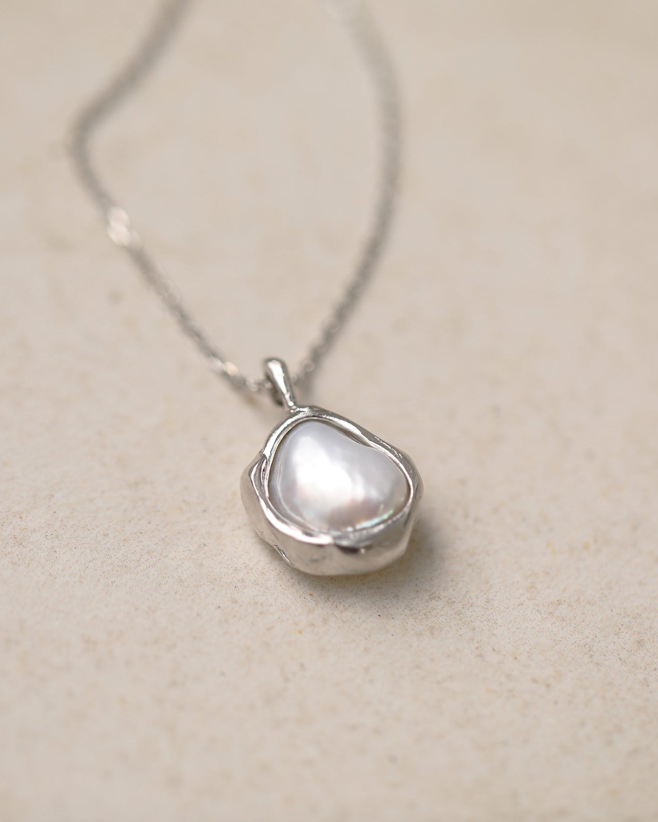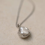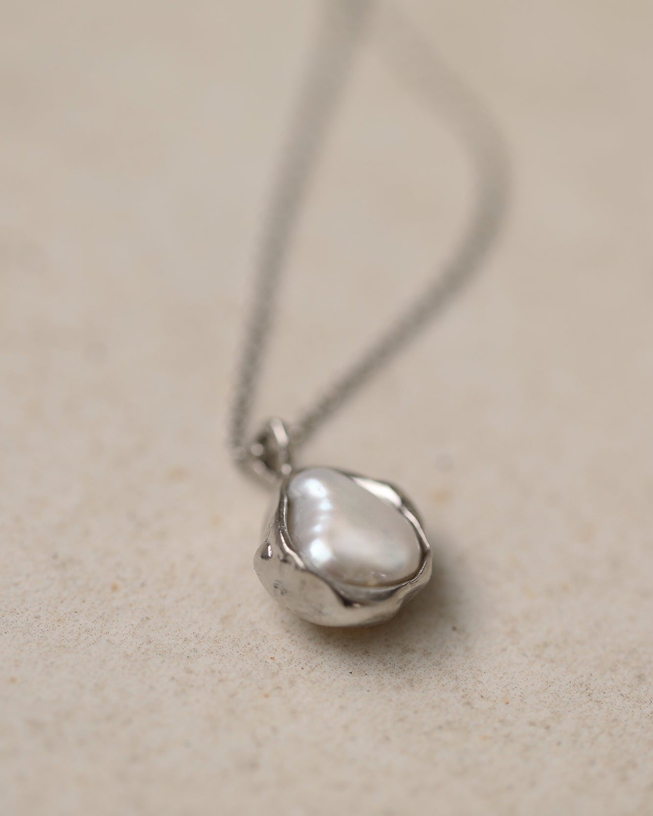 Each necklace is bezel-set in organic textures and sculptural forms, thoughtfully shaped to complement the individuality of the pearl. Designed as one of a kind jewelry, every piece is unique—celebrating the natural character and quiet presence of each pearl.