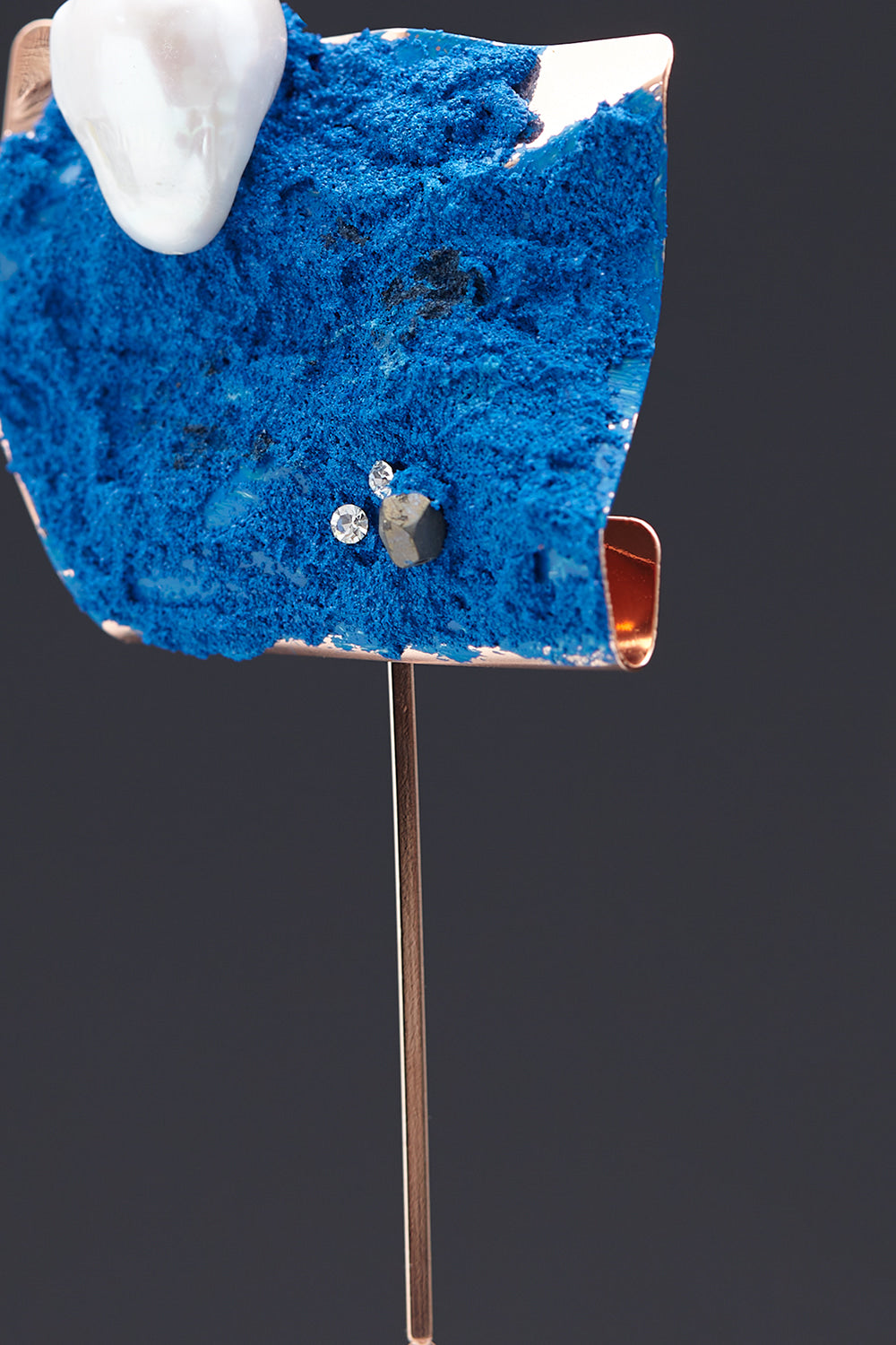 There are moments when the traces left by time and touch feel more truthful than a perfectly polished surface. Raw Breath Beit reveals the marks of existence through a material surface intentionally left unrefined— a record of breath that has passed and remained. Layers of color settle into the surface, not as a single hue, but as a cross-section of time, formed like an eroded terrain. Small elements placed upon it are not decoration, but fragments of memory embedded within the surface itself. The vertical crackled crystal quartz stone anchors the form, allowing raw breath to remain balanced without losing its tension. It leaves not emotion, but silence— not ornament, but a quiet, sustained intensity..