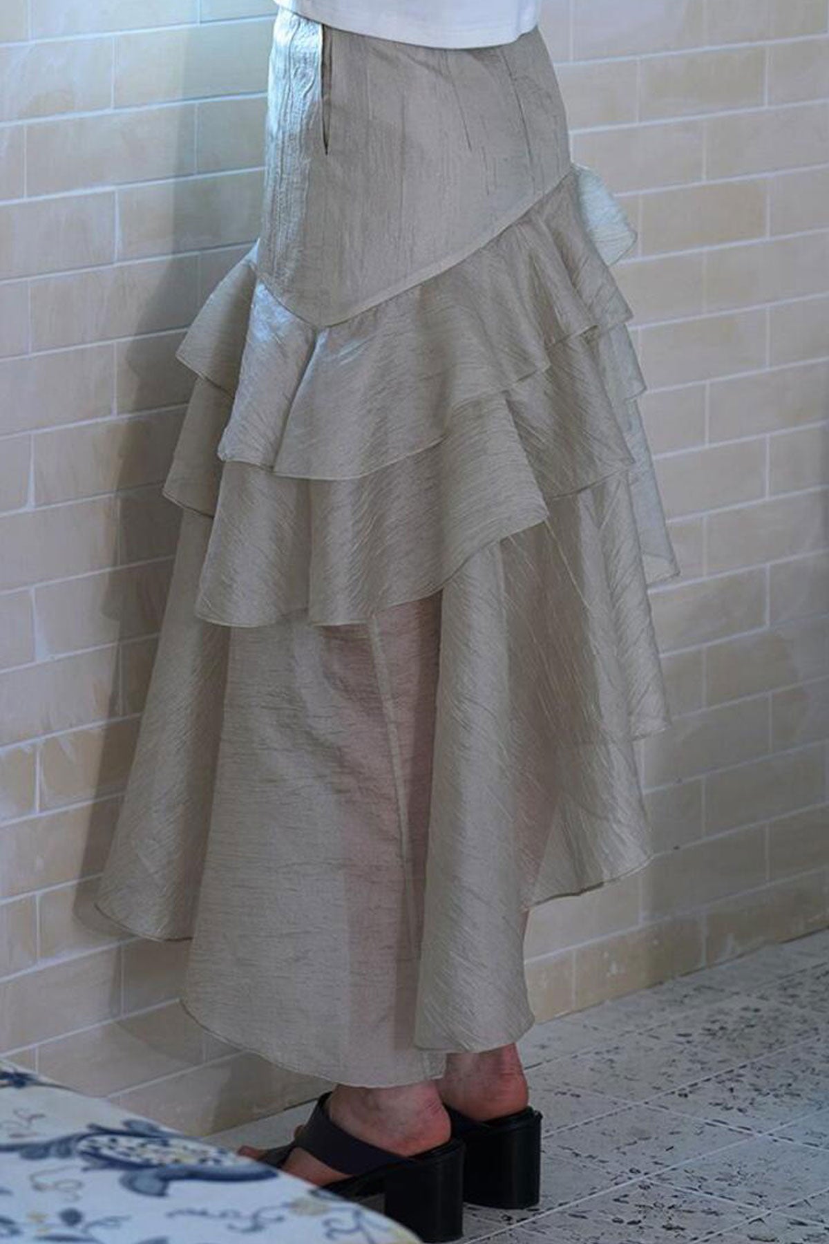 Asymmetric tiered mermaid skirt khaki - fasfas