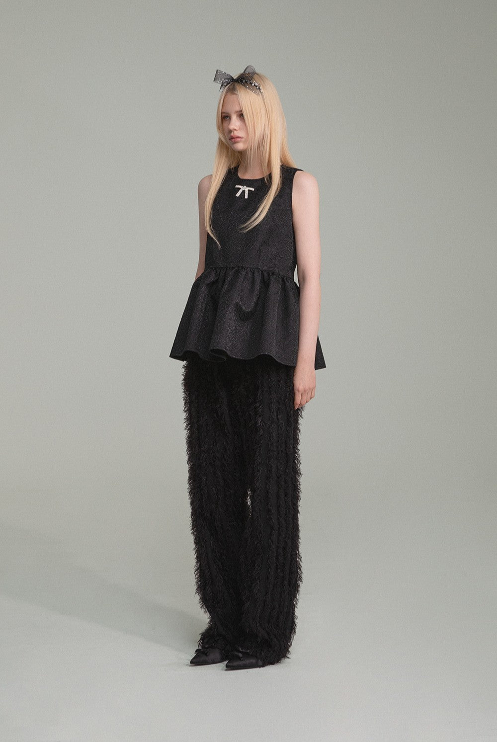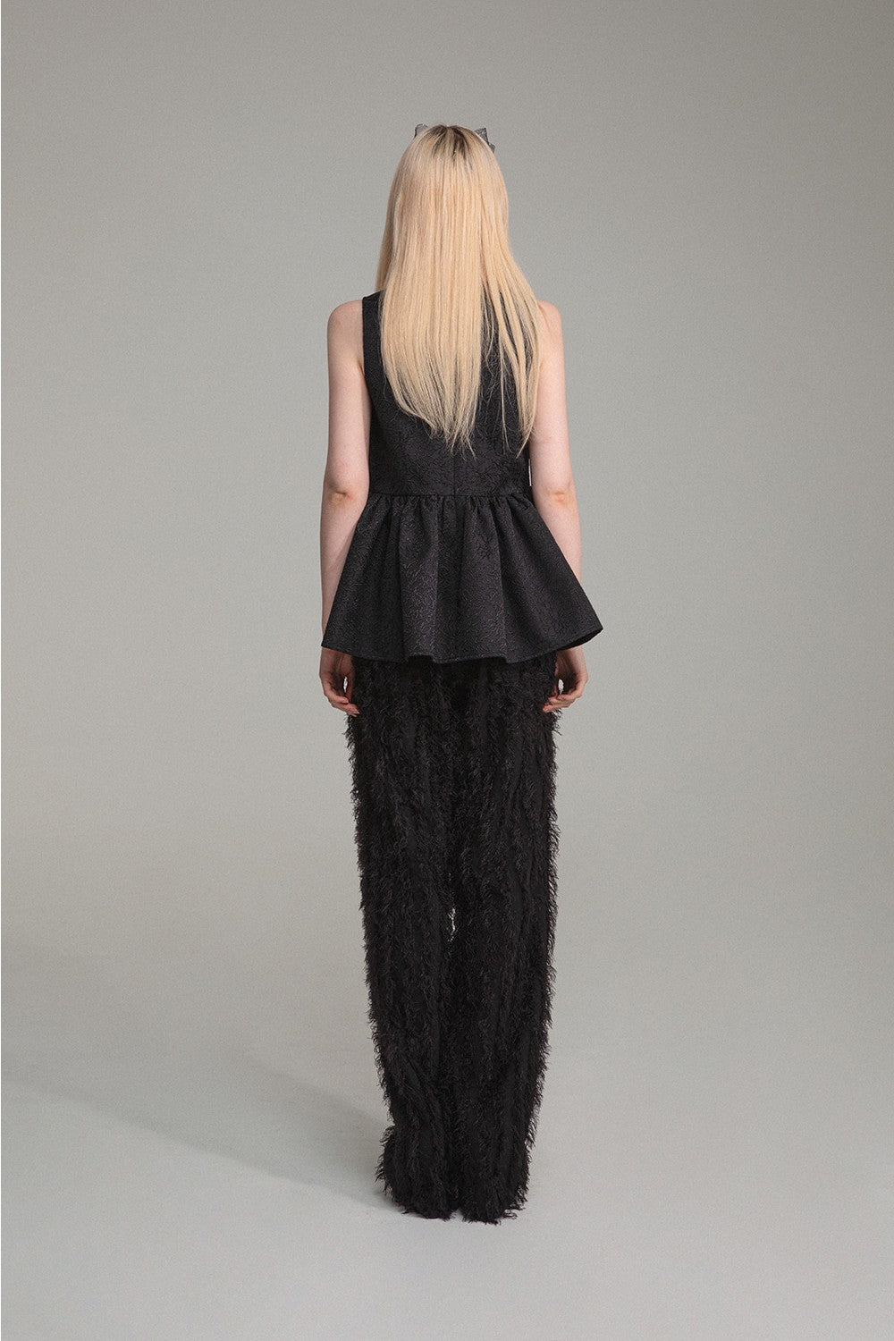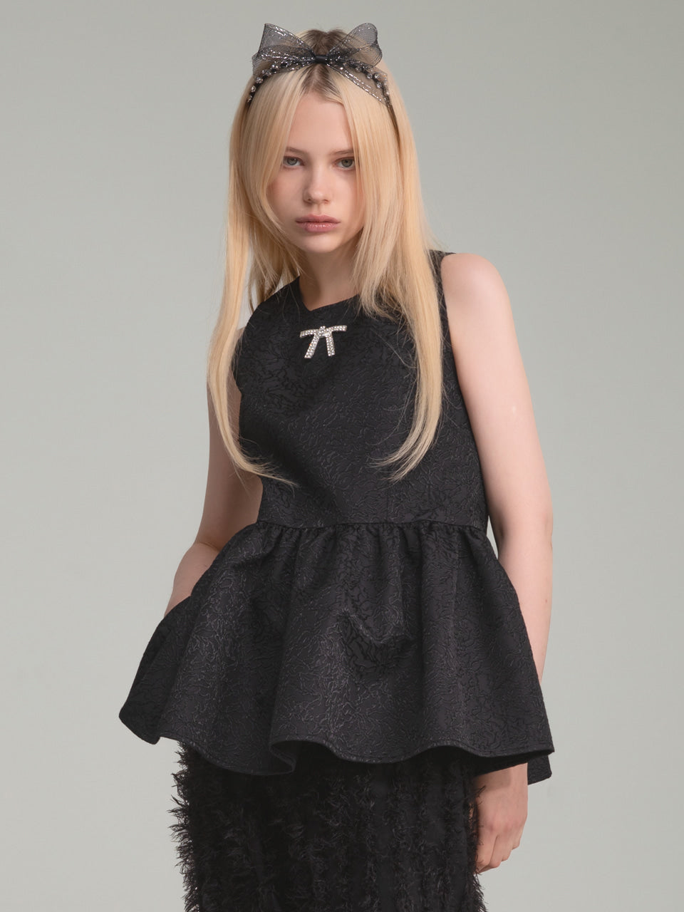 Una blusa sin mangas confeccionada en un lujoso tejido jacquard.