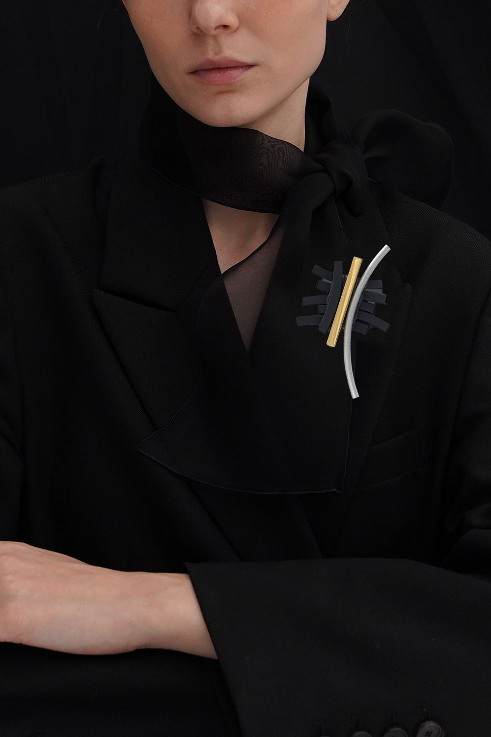 Los elementos individuales se atraen y responden entre sí, encontrando un equilibrio sensorial mientras mantienen un estado de tensión. Cada componente existe de forma independiente, pero se alinea hacia una dirección compartida dentro del conjunto. Más cercano a la estructura que al ornamento, la forma se percibe como un objeto abstracto que no revela emoción, sino una actitud distinta de ser.