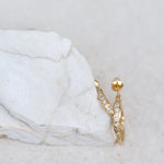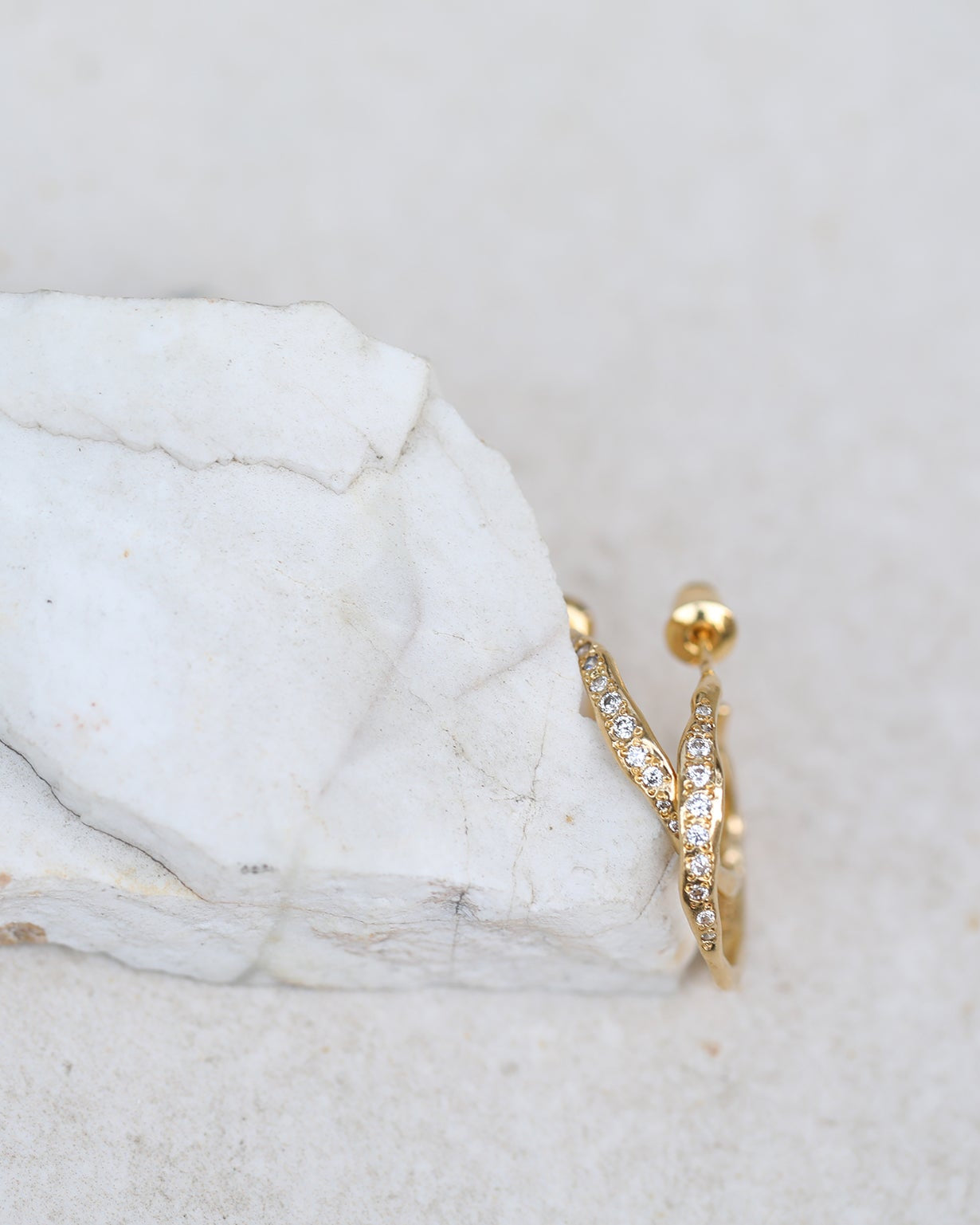 Utilisant des techniques précises de sertissage à griffes traditionnellement réservées aux diamants, les pierres cubiques sont fixées avec une délicatesse et une durabilité exceptionnelles. De subtils fragments métalliques sur la surface ajoutent de la profondeur et un caractère artisanal, créant un contraste textural distinctif.