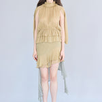 Cutout cape sleeve silk peplum blouse mustard - fasfas