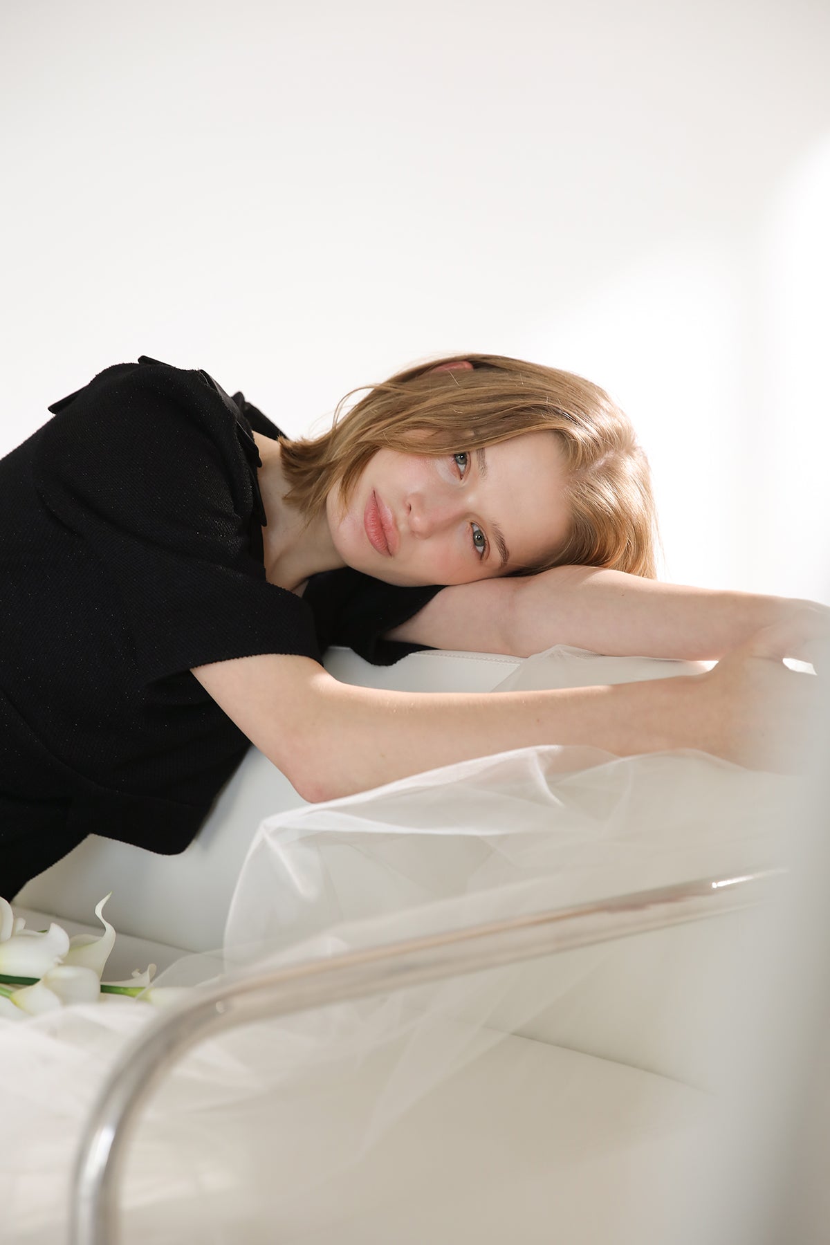 Una scollatura quadrata ordinata crea una silhouette pulita e sofisticata. Il dettaglio del nastro sulla spalla aggiunge un tocco sottile per completare l'atmosfera femminile. La linea di taglio che enfatizza la vita crea un effetto naturale di correzione del corpo. La gonna a linea A leggermente svasata crea un'atmosfera confortevole ma elegante.