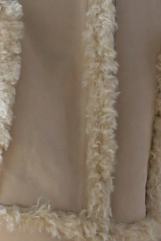 Giacca in shearling con collo alto e rifinitura in pelliccia