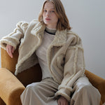 La silhouette ampia e oversize nel complesso rende facile sovrapporre capi interni. Il bordo in pelliccia aggiunto lungo le maniche, l'orlo e le linee delle tasche enfatizza dettagli caldi e tridimensionali. La chiusura con cerniera facilita la vestibilità, e il colore beige neutro si abbina a vari stili. È un capo che può essere ampiamente utilizzato da un look casual quotidiano a un look invernale sofisticato.