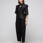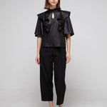 Blusa nera con scollo a portachiavi e volant, vestibilità ampia