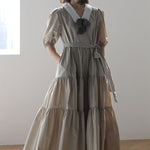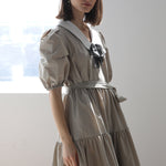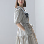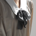 Enfatizza l'umore femminile con il colletto a combinazione di colore bianco e dettagli in nastro kaki