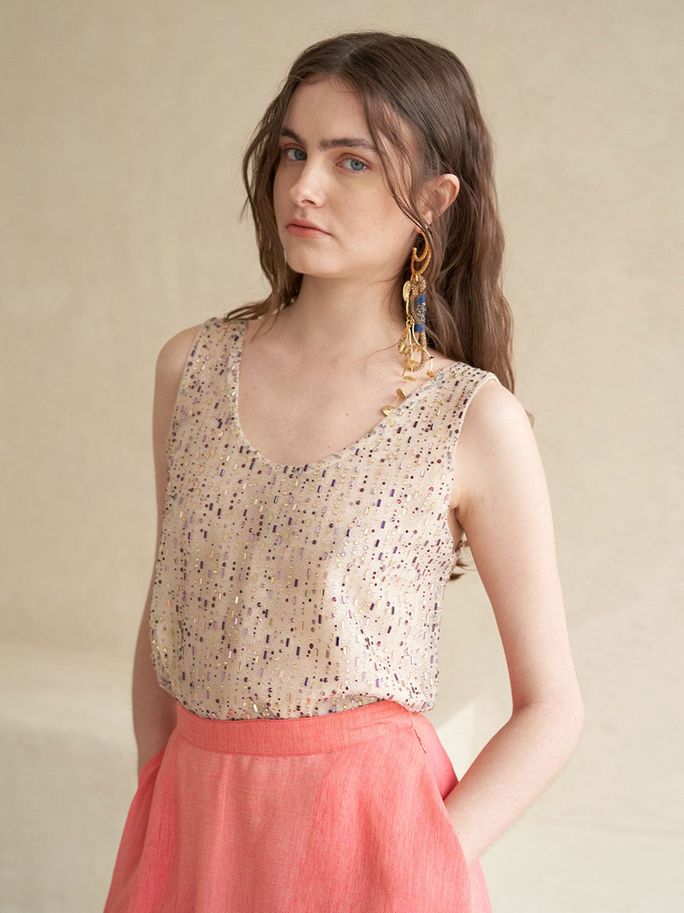 Canotta senza maniche con perline