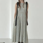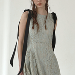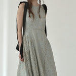 Abito lungo milkmade in pizzo completo verde salvia con nastro nero