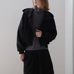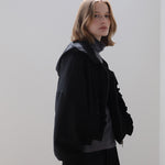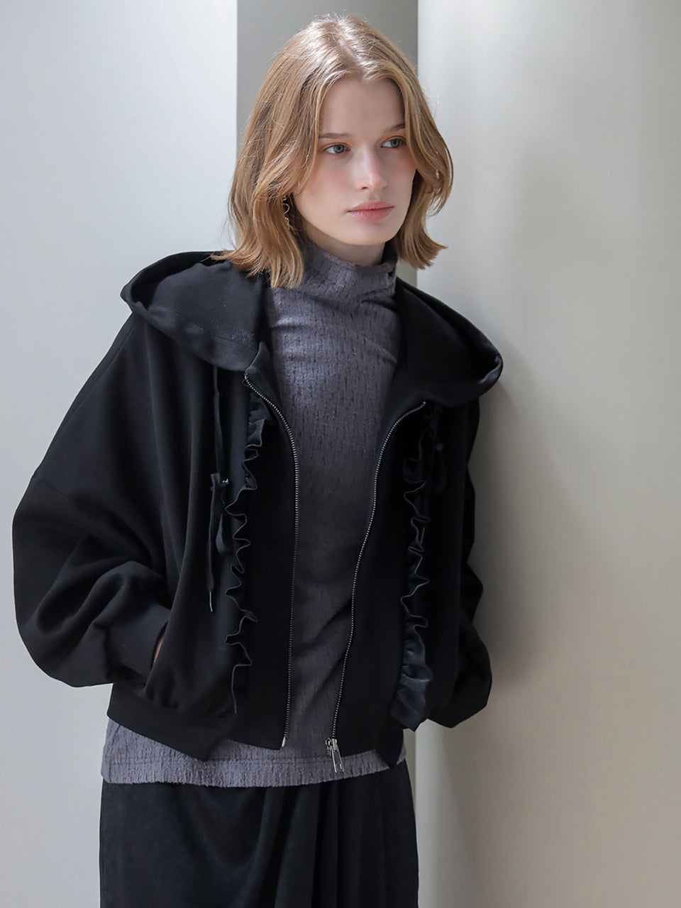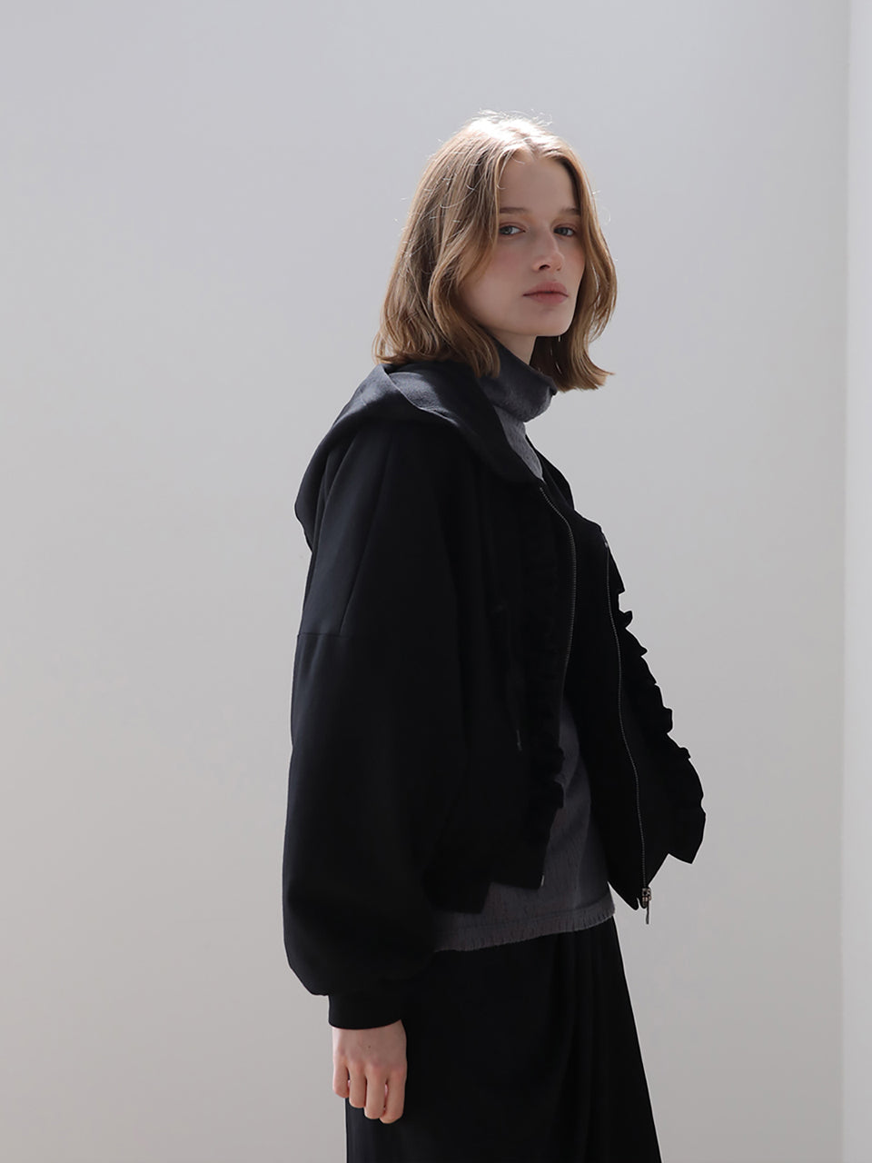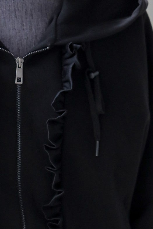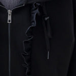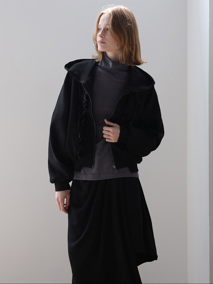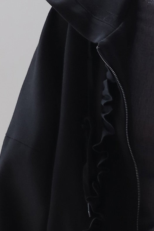 フリルジッパーフード付きジップアップ ブラック
