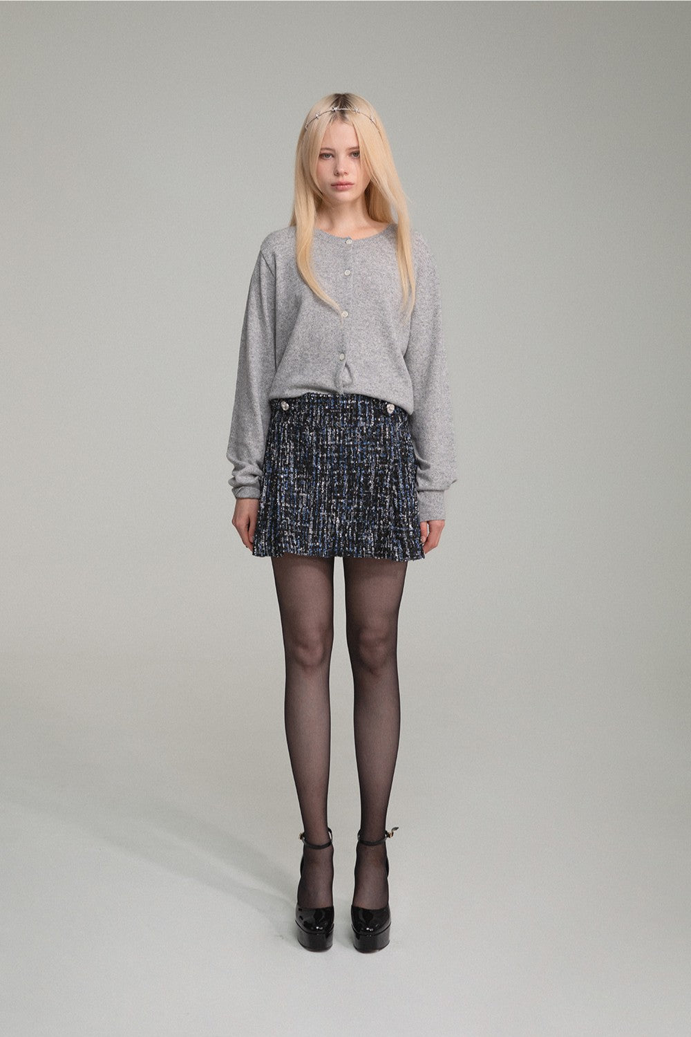 ウエストにハート形の水晶の留め具をあしらい、女性らしいアクセントを加えた上品な一品です。