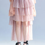 Ассиметриялық 5 қабатты ұзын юбка инди қызғылт