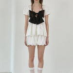 Үлкен таспамен безендірілген кесілген жаккардты блузка, сұрғылт ақ