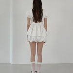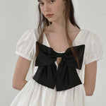 Үлкен таспамен безендірілген кесілген жаккард блузка ақшыл