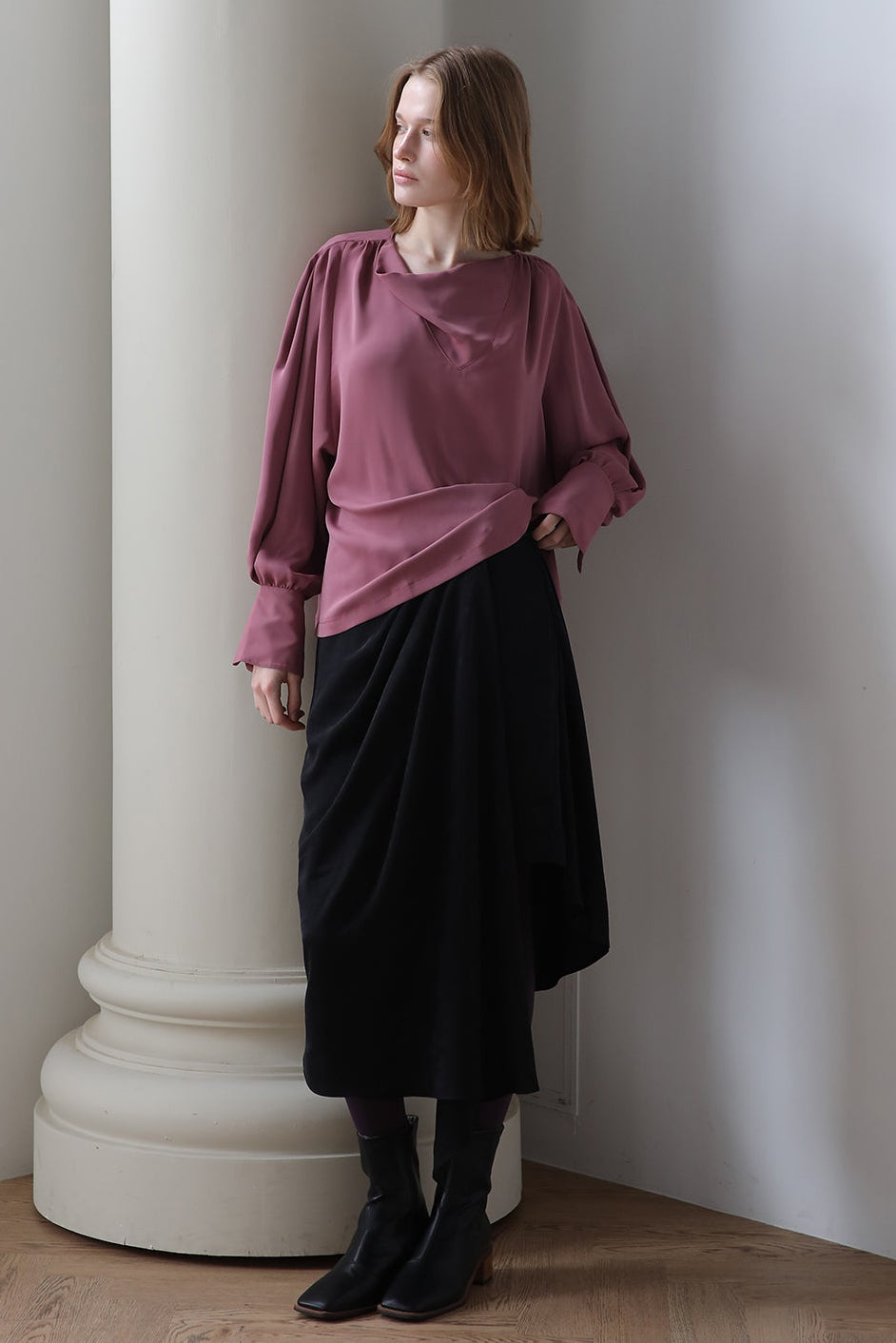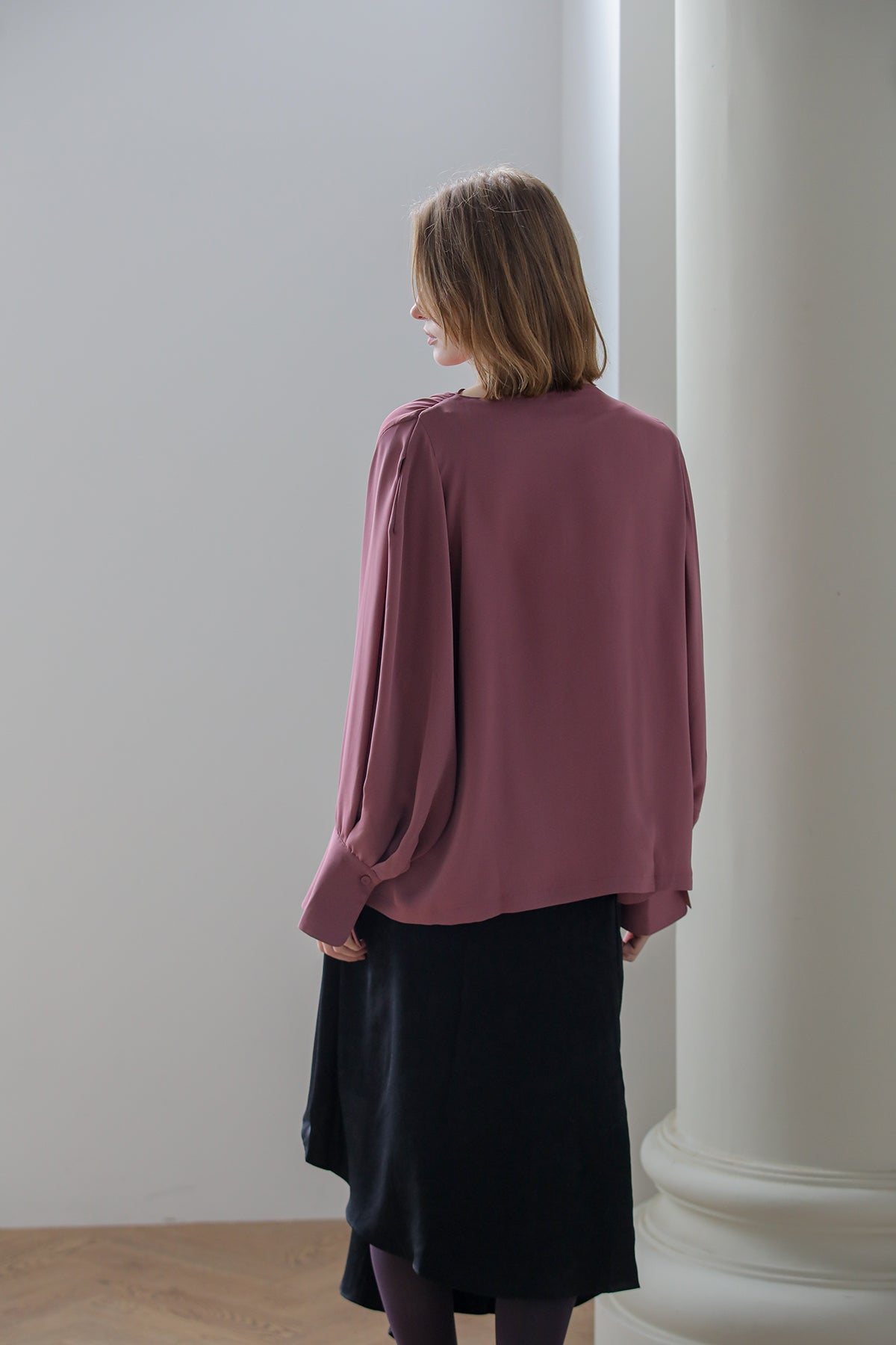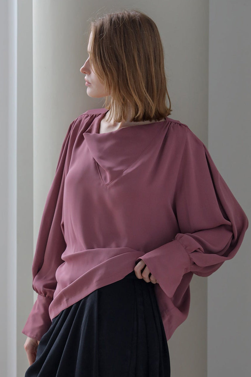 Жеңіл, еркін пішімді, мойны Draped стильдегі блузка