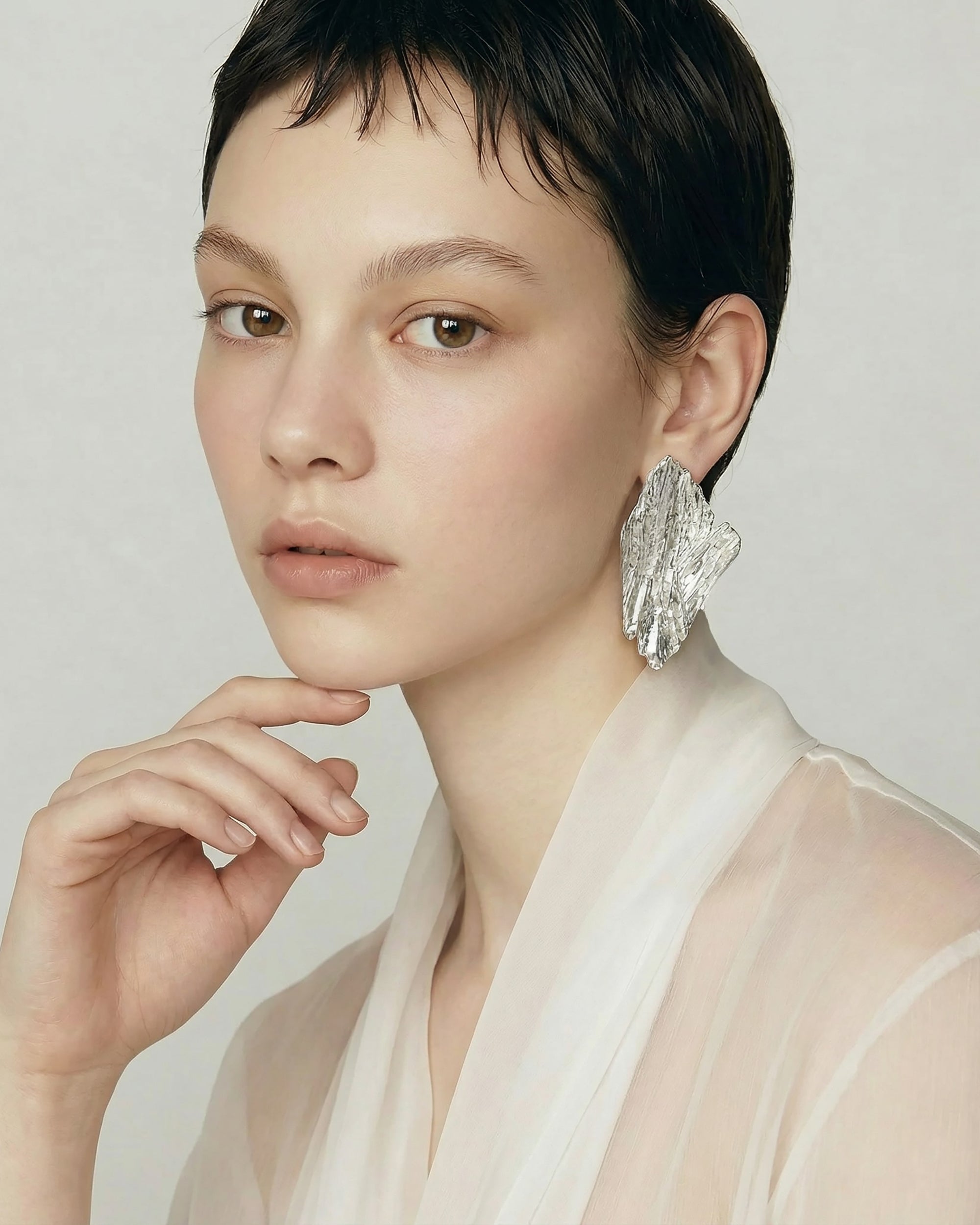 Anting-anting ini mentafsir semula urat semula jadi kayu melalui kemasan yang digilap lembut dengan cahaya yang halus. Direka dengan berat yang sesuai untuk kemudahan pemakaian, ia membawa pernyataan yang halus namun mudah untuk gaya harian. Pakai sebagai sepasang yang sepadan atau gabungkan dengan anting yang berbeza untuk mencipta penampilan individu yang tidak seimbang.