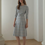 Gaun midi sulaman garis h biru langit gelap