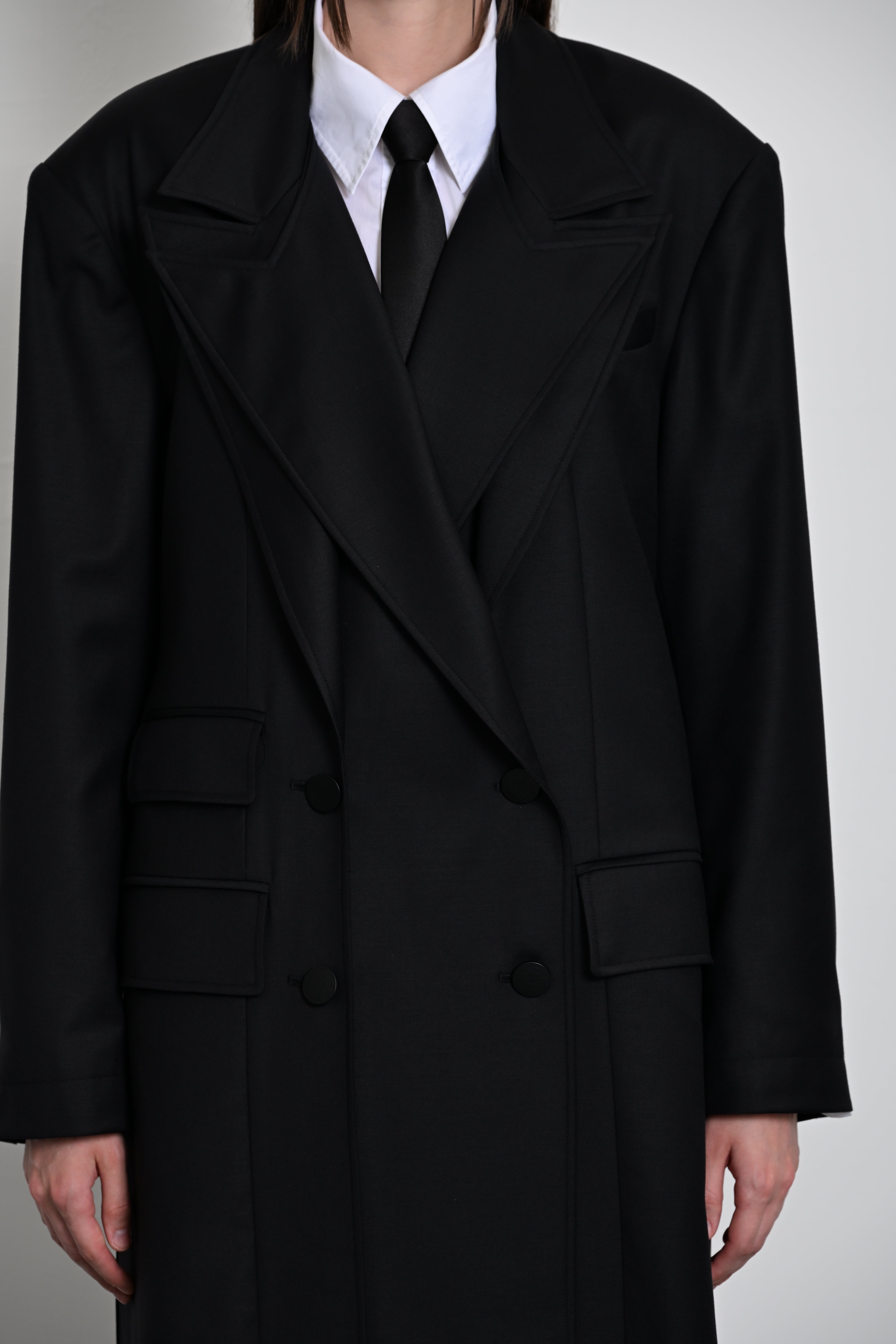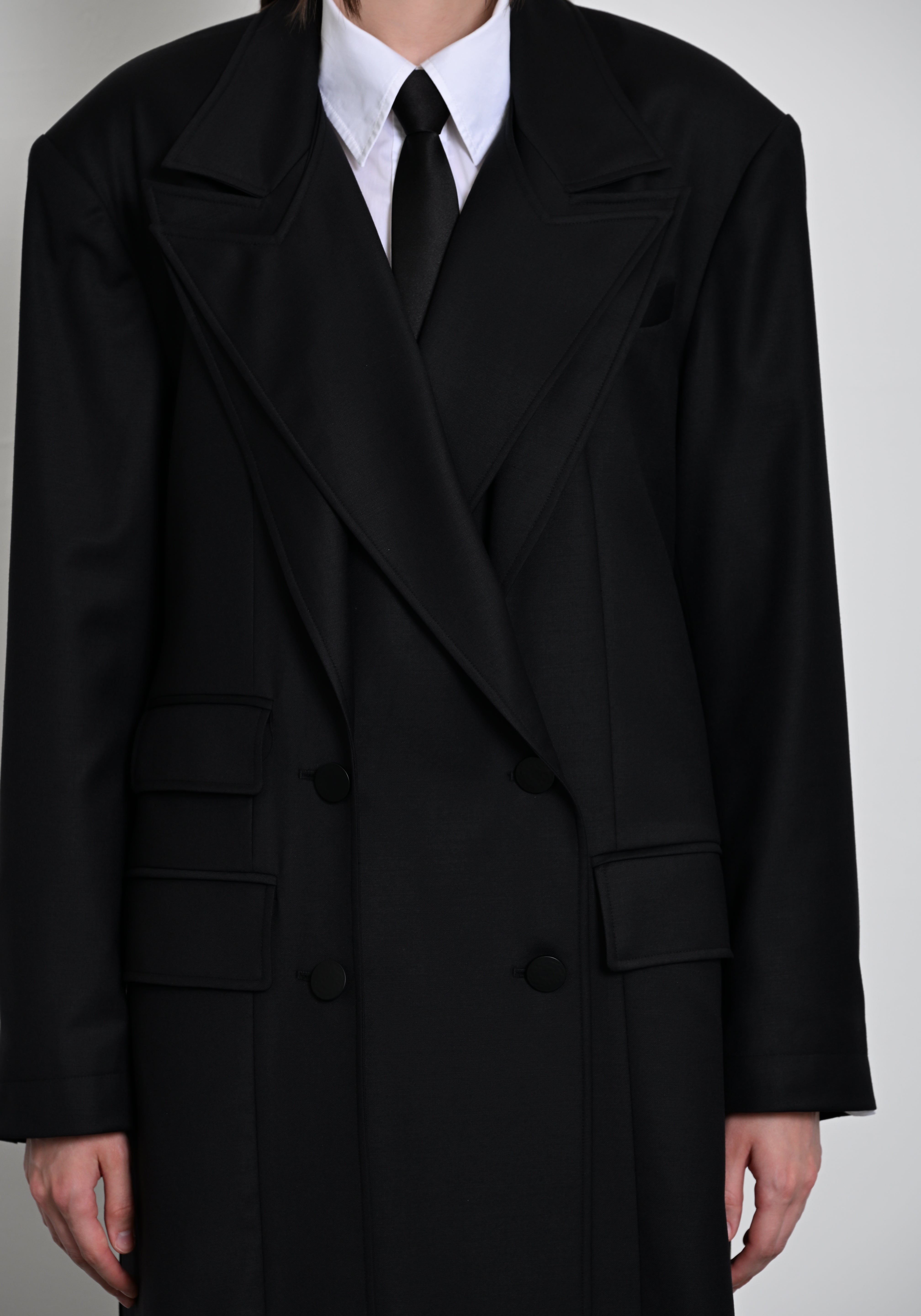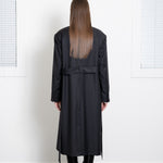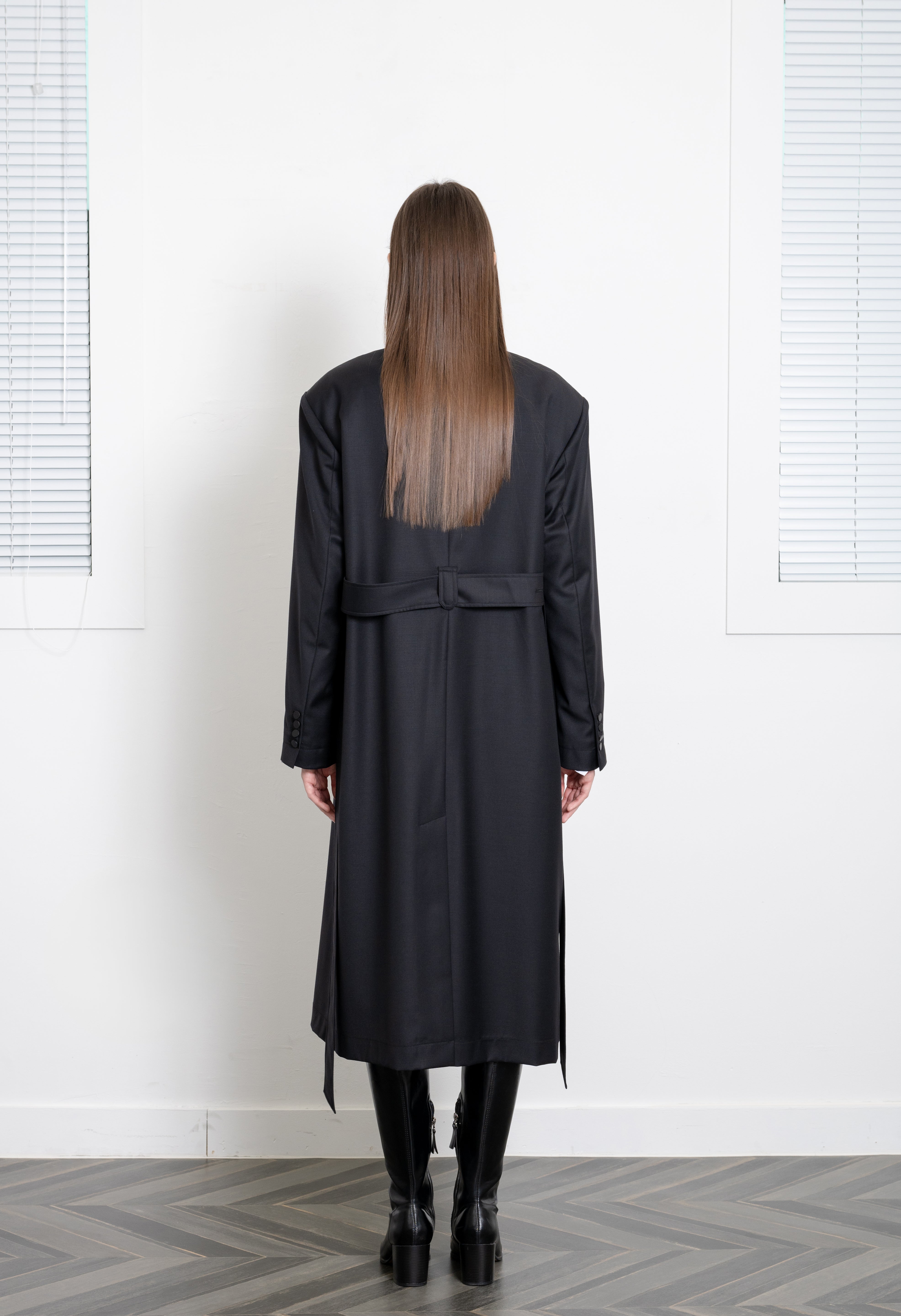 Jubah panjang yang direka rapi ini menampilkan siluet tajam dan memanjang yang ditentukan oleh pembinaan yang tepat. Garis yang bersih dan perkadaran yang tersusun menyampaikan kewibawaan yang terkawal dengan hiasan yang minimum. Lapiskan ia ke atas gaya yang disesuaikan dan santai untuk keanggunan moden yang berpanjangan.